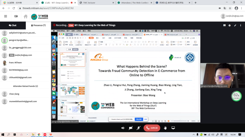 DASFAA2021会议于4月11日至4月13日在中国台北召开,WWW2021会议于4月19日至4月30日在斯洛文尼亚召开。鉴于当前国内外疫情形势,会议均改为线上进行。论文的作者靳俊杰同学代表课题组分别对这两篇论文进行了介绍并与参会者进行了详细讨论。