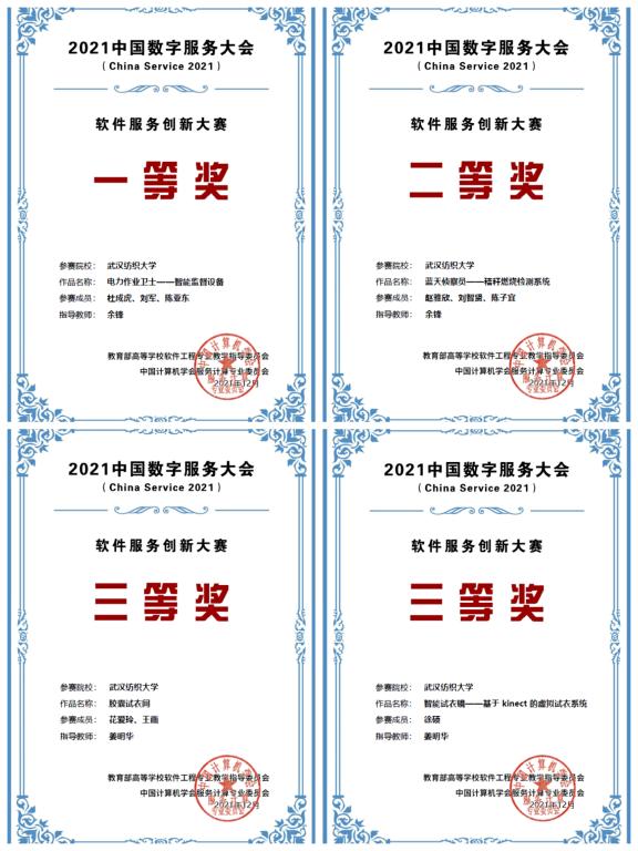 近日,由教育部高等学校软件工程专业教学指导委员会与CCF服务计算专委会共同主办,浙江大学承办的2021年“第十二届中国计算机学会服务计算学术会议”(NCSC 2021)上,在余峰、姜明华老师的指导下,中心研究生杜成虎等同学的参赛作品“电力作业卫士——智能监督设备”获得软件服务创新大赛一等奖。williamhill英国的4支代表,经过激烈角逐,最终从总决赛中脱颖而出,荣获一等奖1项、二等奖1项、三等奖2项。