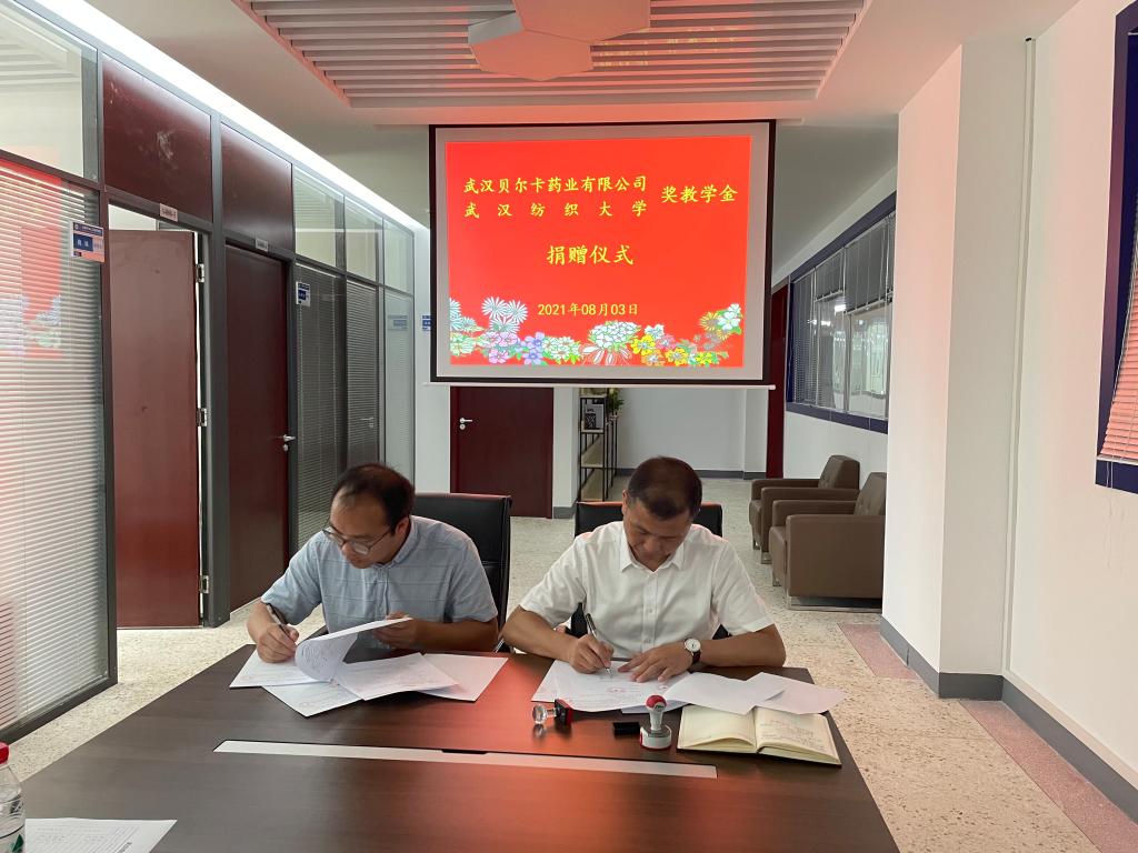 2021年8月3日,williamhill英国在崇真楼南楼A4008举行了“武汉贝尔卡药业有限公司——英国威廉集团奖教学金”捐赠签约仪式,武汉贝尔卡药业CTO李江锋、徐甲,学院领导胡新荣、胡红辉、魏雄出席了签约仪式。