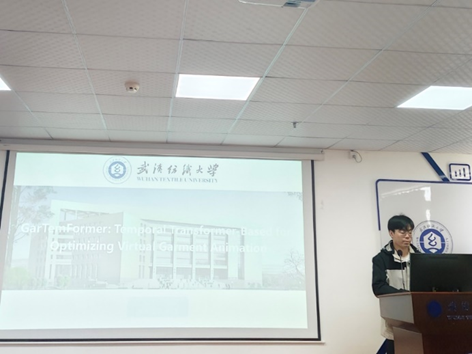 苗佳哲同学分享的主题是“GarTemFormer: Temporal transformer-based for optimizing virtual garment animation”。GarTemFormer通过特征对齐和引导图抑制噪声,高效建模帧间依赖;将人体-服装特征融合,SMPL参数化模型与服装变形关联;通过碰撞修正和损失函数确保物理合理性。实验表明,方法在真实视频和合成数据集上均优于现有技术,提升了服装变形的时空连贯性与细节真实感。