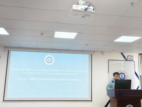 时佳乐同学分享的主题是“GrasOpen:Biometric Authentication via Reach-and-Grasp for Smart Door Acces Using Smartwatch”。他介绍了一种专为开门场景量身定制的创新生物识别认证系统GrasOpen,该系统采用带有IMU的智能手表来跟踪和分析手臂运动。GrasOpen通过利用伸手和抓握动作的独特特性来应对关键挑战,消除了用户记忆复杂动作的必要性,并避免了等待面部识别等冗余动作。最初,GrasOpen提出了一种轻量级模型,用于从日常活动中辨别开门动作。然后,GrasOpen集成了一种互补滤波器方法来捕获开门动作中的多样性相关特征。这些特征随后通过修改后的ConvBoost模型进行处理,以实现精确的用户身份验证。实验结果显示,GrasOpen在活动识别和身份认证方面的准确率分别为98.78%和98.65%。