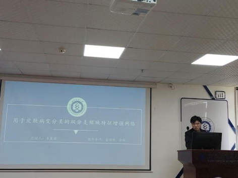 袁嘉淇同学分享的主题是“DFFENet:Dual-Branch Frequency Domain Feature Enhancement Network for Skin Lesion Classification”, 针对现有方法主要依赖于空间域的特征提取,忽略频域信息的利用。他提出的DFFENet旨在提高皮肤病变图像分类的准确性,通过结合多分支特征、局部频域信息和空间信息,增强皮肤病变区域的表征能力,从而提升分类性能,并有效实现皮肤病变的自动分类。其中,频域特征增强模块能够精准提取皮肤病变的鲁棒特征,通过捕获和处理不同频段的频域分量,使网络充分利用频域信息,并在复杂背景下准确识别皮肤镜图像中的病变区域。他在多个数据集上进行了实验评估,结果表明,该方法在皮肤病变分类任务中达到了最先进的性能,凸显了其在皮肤病计算机辅助诊断中的重要价值。