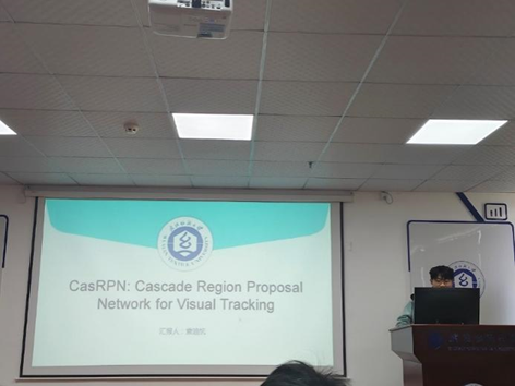 袁油抗同学分享的主题是“CasRPN: Cascade Region Proposal Network for Visual Tracking” 针对基于RPN跟踪器提取前后景特征区分度不高问题,他提出联合卷积和ViT的特征提取网络。在前两阶段利用卷积建立局部相关,并在第三阶段使用ViT构建全局相关性,这样增强了特征区分度。面对单阶段RPN单次调整预测框不够充分问题,他提出了级联RPN头部网络,实现了对初始化框的多阶段优化,在不同阶段使用了不同的正负样本评价标准,评判条件设置逐渐严格。他在GOT-10k数据集上进行了消融实验,验证了他提出方法的有效性,并在TrackingNet和UAV数据集上表现优越。