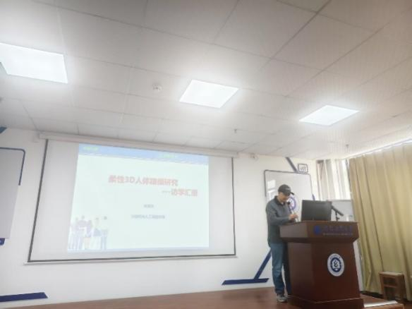 何儒汉老师围绕《柔性3D人体建模研究》进行了汇报,介绍了国立高等纺织工程师学院的相关情况,并详细讲述了其参与的新型混合数字人体建模项目,从申请动因到研究进展,强调了3D人体建模特别是在仿真产品与人体交互方面的难点,并对柔性3D人体建模的研究前景进行了展望。