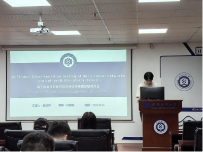 张仕林同学分享的主题为“DeFinder: Error-sensitive testing of deep neural networks via vulnerability interpretation”。深度神经网络测试通过对抗性测试用例评估神经网络的脆弱性。开发人员对种子输入实施微小扰动来生成测试用例,这些测试用例由精心设计的测试标准指导。然而,当前基于覆盖率的测试方法依赖于覆盖模型状态,而不是分析种子输入对诱发错误行为的影响。在本文中,他们提出了一种名为DeFinder的新型深度神经网络测试方法,该方法通过为神经网络实施可解释框架来建立模型脆弱性与种子输入之间的关联,从而生成错误敏感测试。通过系统分析种子输入中的脆弱区域,DeFinder显著提高了测试套件最大化测试覆盖率和暴露错误的能力。