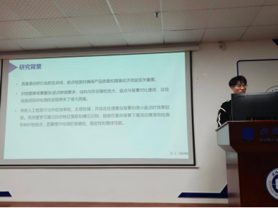 周双同学分享的主题为“Fabric defect detection method based on improved RT-DETR”。为应对织物缺陷种类有限、尺度变化显著以及模型检测精度低等挑战,他们提出了一种基于RT-DETR的织物缺陷检测方法——DHR-DETR。该方法通过在原RT-DETR模型中引入Dynamic-DCNv2模块、HS-FPN以及RetBlockC3模块,显著提升了检测性能与部署效率,在实际工业检测应用中展现出强大潜力。