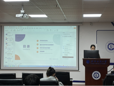 徐飞同学分享的主题为“Event-triggered Consensus Control for Multi-agent Systems under DoS Attacks”。随着多智能体系统在安全领域的广泛应用,其通信网络面临的拒绝服务攻击严重威胁系统协同与控制安全。他们致力于研究DoS攻击下多智能体系统的安全协同控制问题。研究内容分为三部分:首先,针对能量受限网络,提出事件触发控制协议,解决了Zeno行为问题,实现了安全一致性。其次,在间歇通信框架下,引入动态事件触发机制,提升了资源调度效率,确保了多智能体系统实现安全一致性。最后,拓展至非线性系统包容性控制,相继提出两种事件触发策略,有效抑制了非线性与攻击的复合影响,并解决了状态不可测难题。理论与仿真表明,所提策略能有效抵御攻击、降低通信负担,为资源受限系统提供了可行方案。
