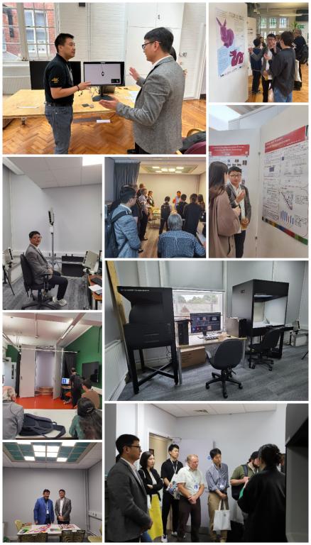 会议第三日,在主办方精心组织下,参会人员先后参加了Workshop专题讨论、实验室参观(Lab Tour)、学术海报交流以及企业产品展示。我院青年教师梁金星参与了第3组“Facial Appearance Measurement and Applications”的专题Workshop讨论,对利兹大学肤色图像色彩校正研究提出宝贵参考建议;他参观了利兹大学实验室先进仪器设备,沉浸式体验了三维人脸高精度建模设备、三维人体高精度快速扫描仪器、以及服装面料全外貌成像与虚拟设计纺织装备的使用;与海报展示作者进行了激烈深入地讨论交流,开阔了研究视野。