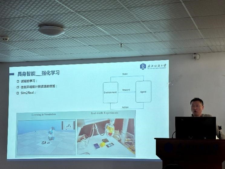 顾宁权同学分享的主题是“CNCC之人工智能与机器人”,具身智能是指一种基于物理身体进行感知和行动的智能系统,其通过智能体与环境的交互获取信息、理解问题、做出决策并实现行动,从而产生智能行为和适应性。目前具身智能一条主要的研究思路是在虚拟物理世界设计和开发具身智能算法,并将其迁移到真实世界(Sim2Real)。重点任务主要包括具身导航、问答和包括物体重排列在内的、多种多样的物体操纵任务等。另一条研究思路是在真实世界中采集具身交互数据和学习,使用的方法包括强化学习、模仿学习。