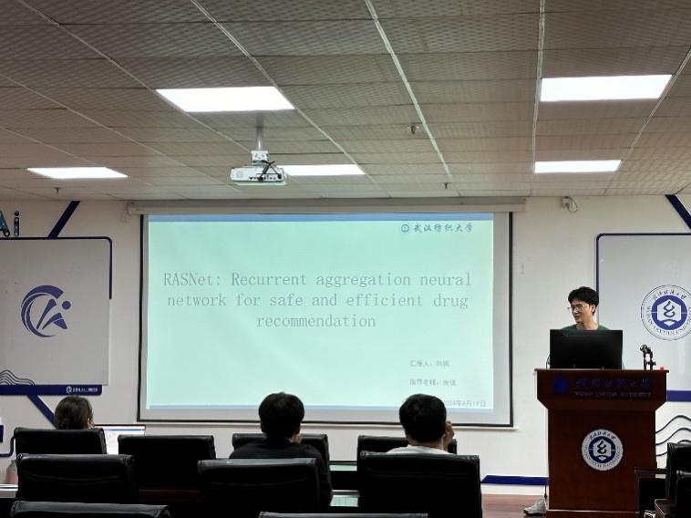 韩枫同学分享的主题是“RASNet:Recurrent aggregation neural network for safe and efficient drug recommendation”,由于长期感染慢性病,患者的病情会出现周期性变化,如何基于电子病历对此类患者建模以精准推荐用药是一个难题。为应对这些挑战,他们提出了一种名为 RASNet 的新型药物推荐模型。RASNet 使用循环聚合网络来识别与患者当前健康状况相似的历史健康记录。当患者的病情呈现周期性模式时,它可以过滤掉多次就诊中的噪声记录,从而有效解决因病情反复引入的数据噪声问题。此外,RASNet 还引入了新颖的 DDI 损失,以确保药物推荐的安全性和准确性。在 MIMIC-III 数据集上进行的大量实验证明,RASNet达到了最先进的性能。