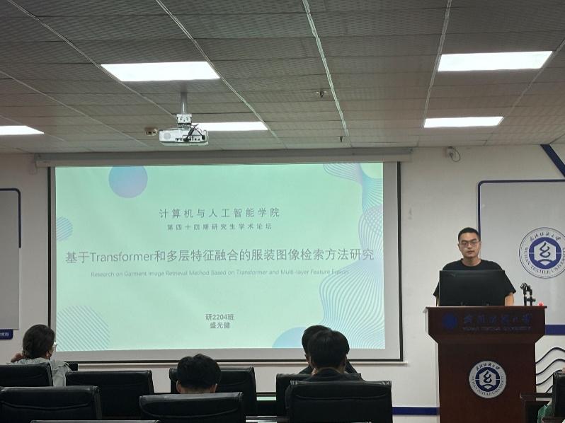 盛光健同学分享的主题是“Research on Garment Image Retrieval Method Based on Transformer and Multi-layer Feature Fusion”, 他们针对服装图像检索领域中存在的问题进行了研究。虽然之前的两阶段解决方案已经达到了比较高的准确率,但这种方式需要对图像进行两次排名,限制了性能的进一步提升。为了克服这个限制,他们提出了一种新的多层特征融合网络方法,融合了低层和高层特征的优点,以期待在服装图像检索任务上取得更好的效果。通过在服装图像检索数据集上的实验验证,他们的多层特征融合网络方法显著提高了图像检索的准确率,优于之前的两阶段解决方案。并且他们的研究为图像检索领域提供了一种新的思路和解决方案。