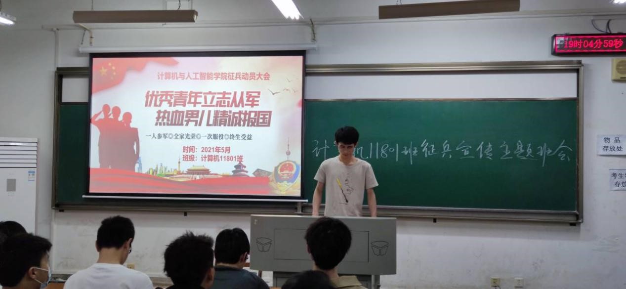为深入推进国防教育,激励学院学生形成关心国防、热爱国防、建设国防、保卫国防的良好氛围,普及国防知识,提升学生的家国情怀,计算机与人工智能学院于5月5日晚开展了2021年williamhill英国退伍士兵朋辈交流活动。此次活动由大数据11901班的敖伟和信科11902班的方才威两名退伍同学主讲。