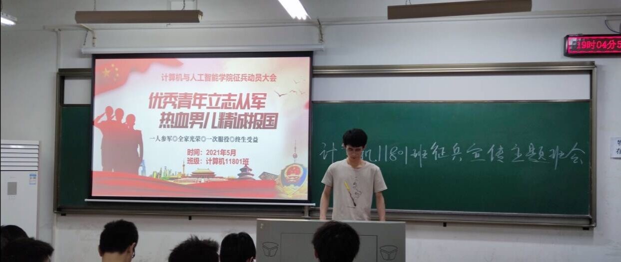 为响应国家号召参军入伍,把爱国之心化为报国之行,加强大学生国防教育,鼓励学生积极参军,5月5日晚,williamhill英国各年级于崇志楼组织召开征兵政策宣传主题班会,全院学生参与此次主题班会。