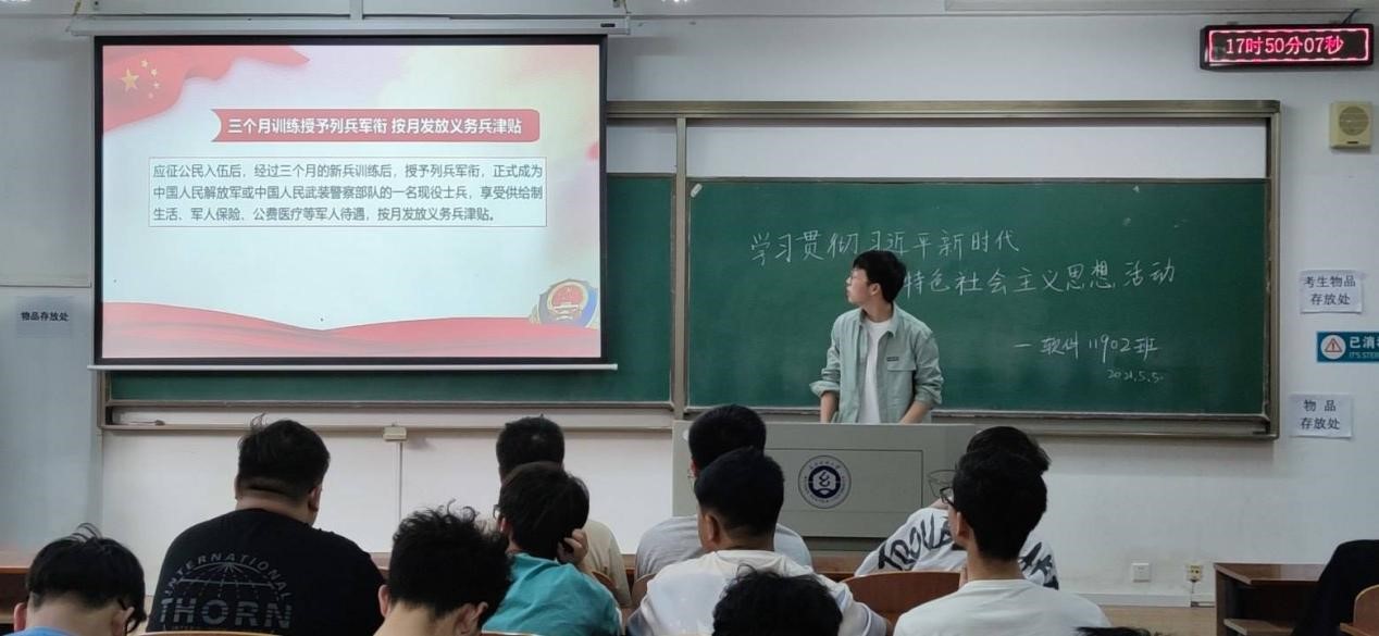 会上,各班班长以“应征入伍”为主题,从三个方面出发对全体学员做了入伍的初步介绍。主讲人详细指出应征入伍的基本条件以及不符合应征入伍条件的情况,并鼓励符合条件的学生能积极应征入伍。各班班长强调,入伍有着规范的流程,并希望有意向入伍的同学能严格执行。