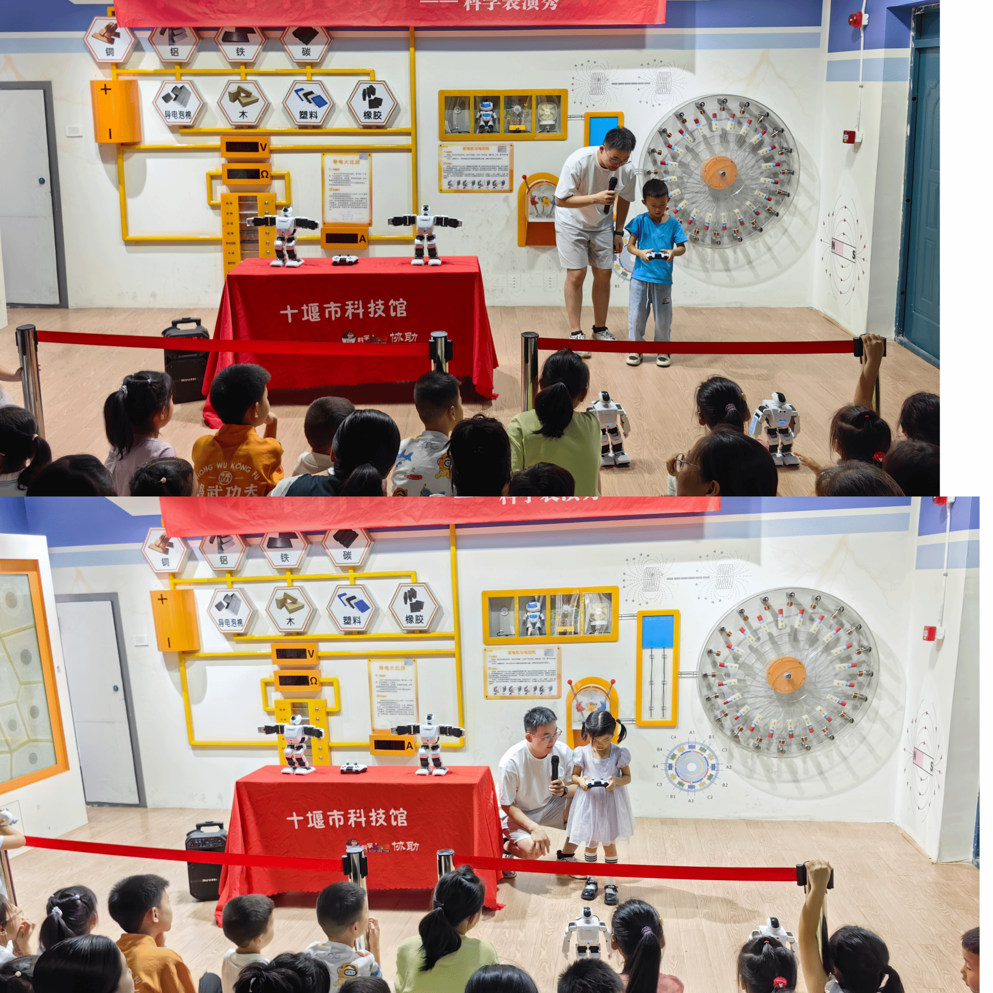 在国家大力推进人工智能教育、着力提升青少年 AI 素养的时代浪潮下,基层人工智能教育资源的补充与优化成为教育领域的重要课题。6月21日,williamhill英国 “智启童心” 实践团立足学科专业优势,创新实践形式,以 “AI 教育赋能童心成长” 为核心,走进十堰科技馆开展 “人工智能科普”机器人表演秀活动。