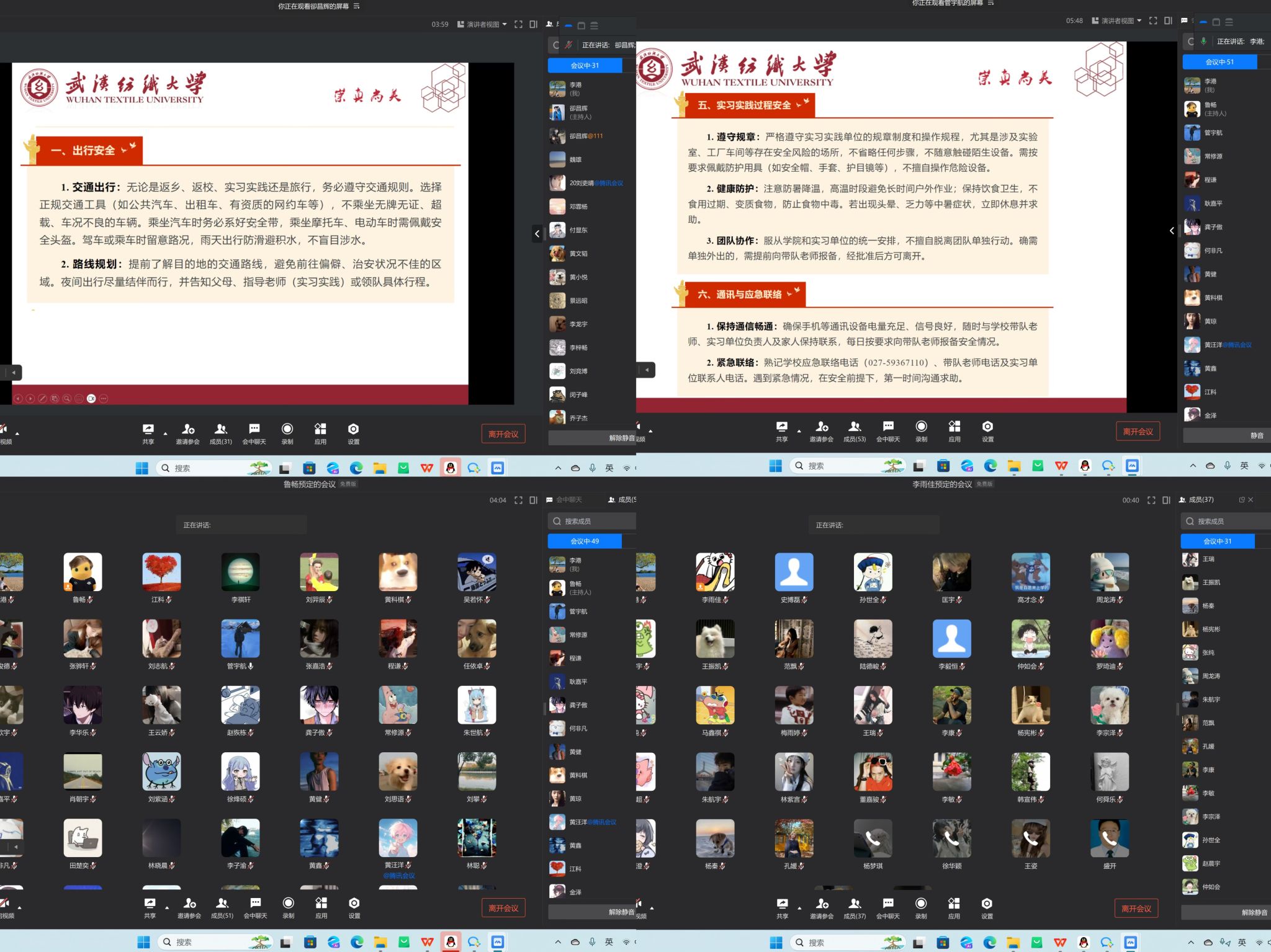 此次线上主题班会分工明确、重点突出,既强化了学生的安全防范意识,又为暑期专业提升指明方向,助力学生在假期实现安全与成长“双丰收”。学院将持续跟进学生暑期动态,全力守护学生暑期安全,筑牢校园安全防线。