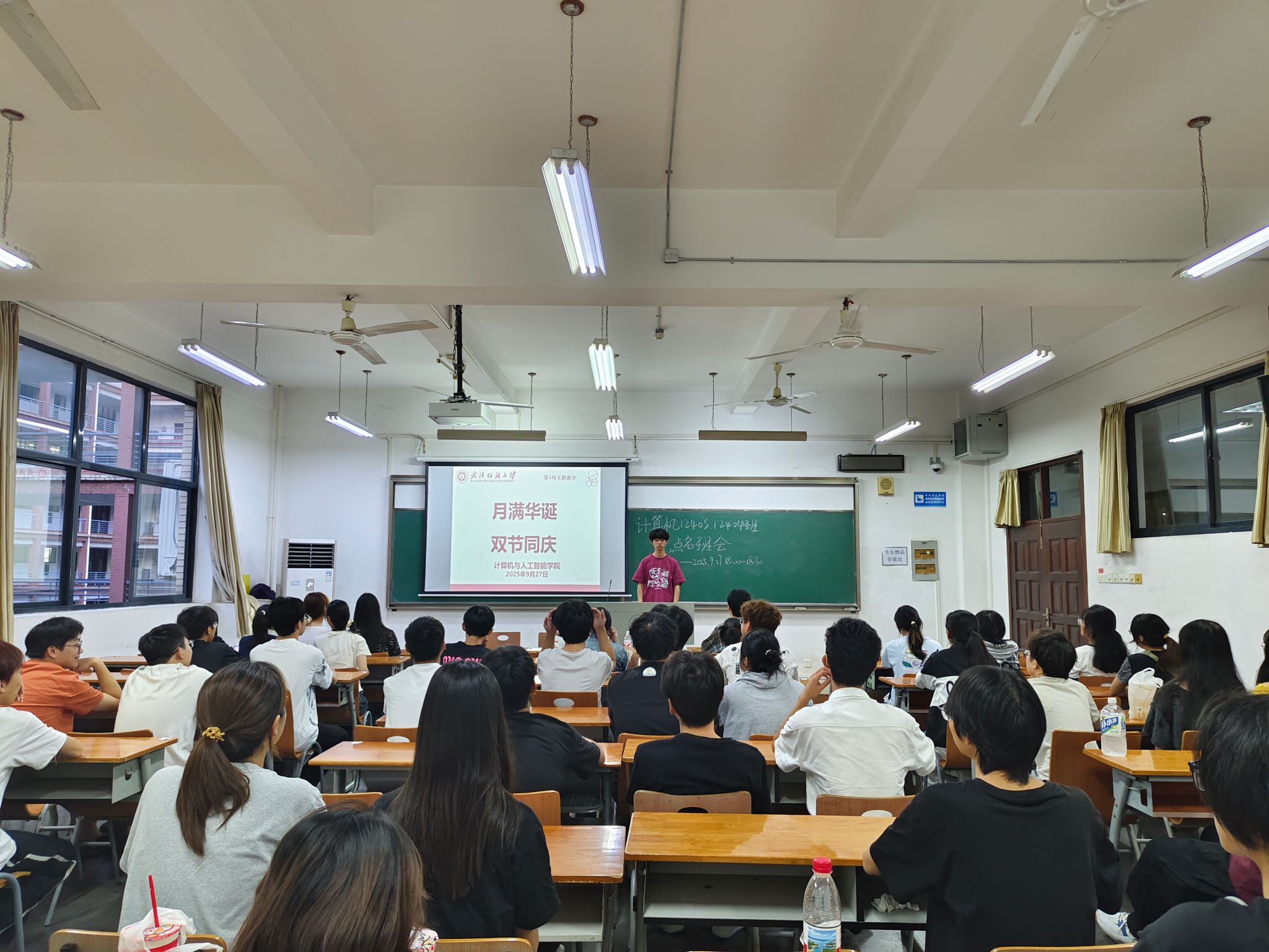 班会伊始,各班班长首先对国庆中秋假期前的返校人数进行统计确认,并及时将相关数据上报学院,为假期学生管理工作奠定基础。随后,班会围绕双节主题展开丰富内容:班长们详细讲述了国庆节的由来与历史意义,回顾了新中国成立以来在经济、科技、民生等领域取得的伟大成就,激发同学们的爱国热情与民族自信;同时介绍了中秋节的悠久历史、民间传说及各地习俗,让同学们在了解传统节日文化中感受中华优秀传统文化的魅力。