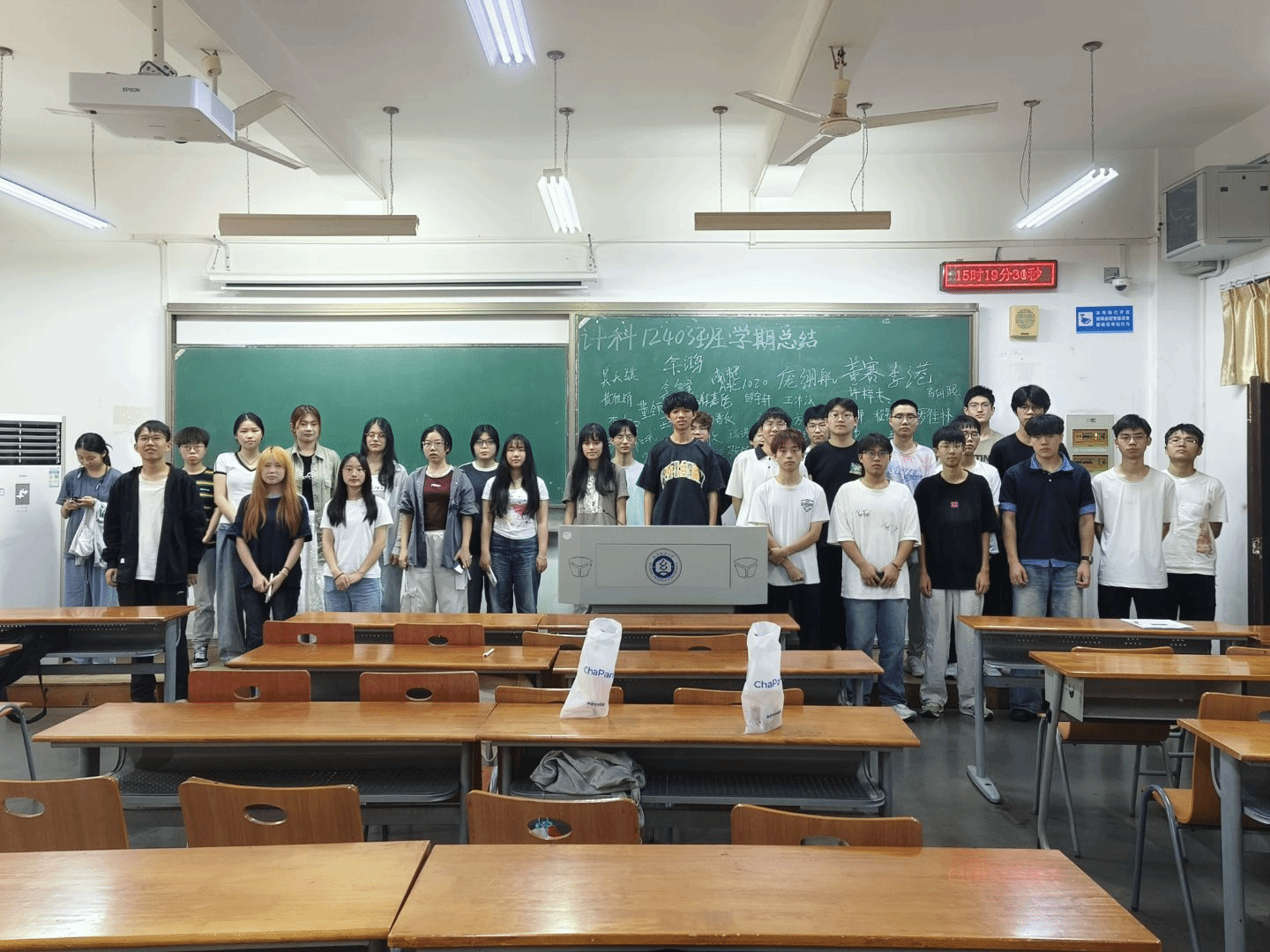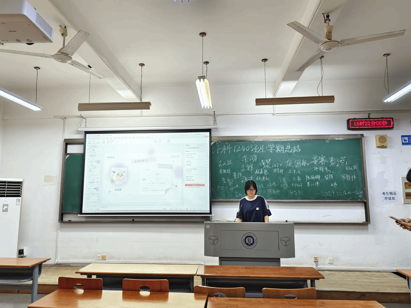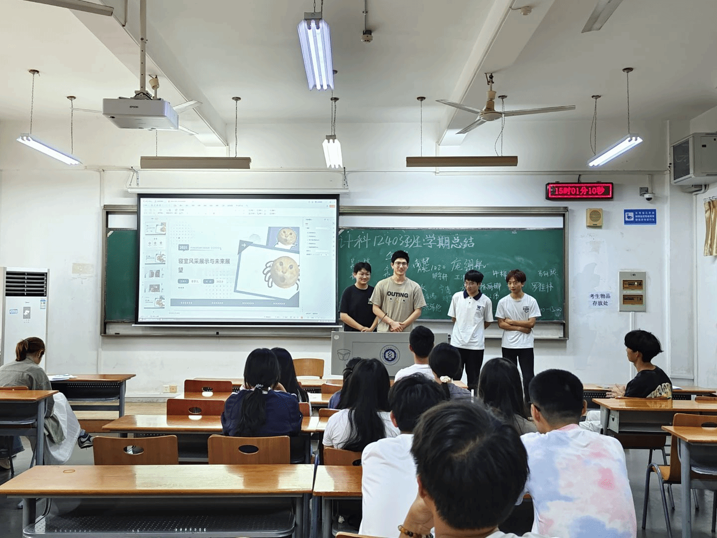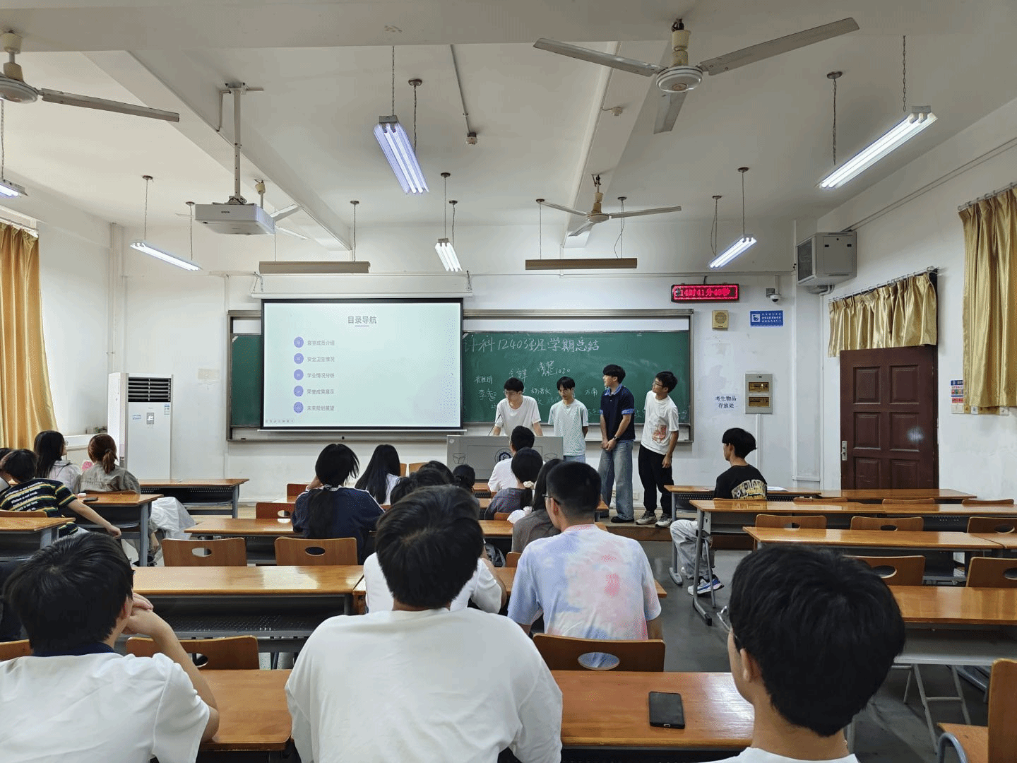 9月26日下午,计算机12403班在3号教学楼举行大一学年学期小结班会。班主任余锋、辅导员李港及全班同学共同参与,会议以宿舍为单位汇报上学期学习与生活情况,促进同学们了解不同寝室特点,互学互鉴。本次班会由班长庞翊航主持。