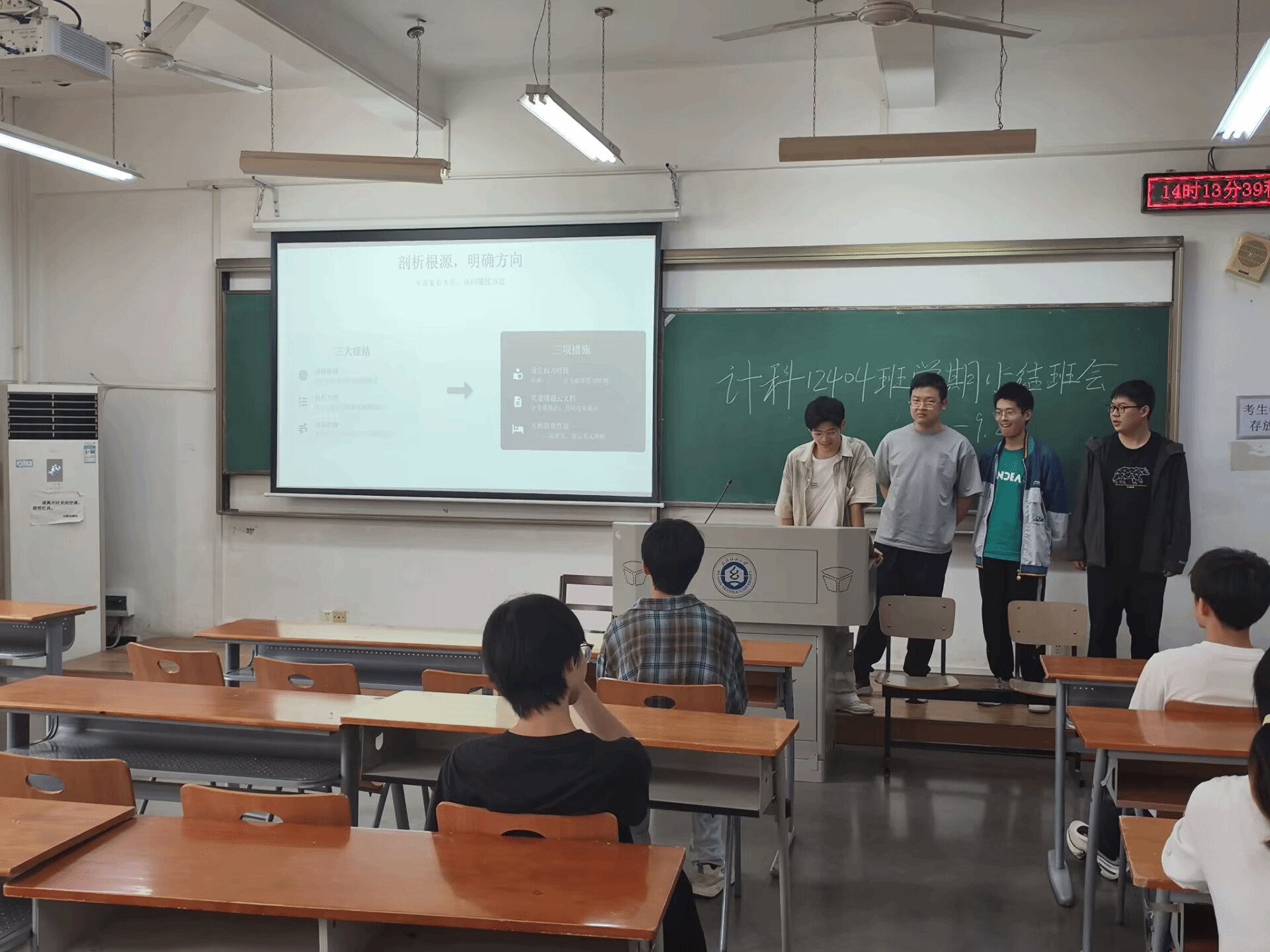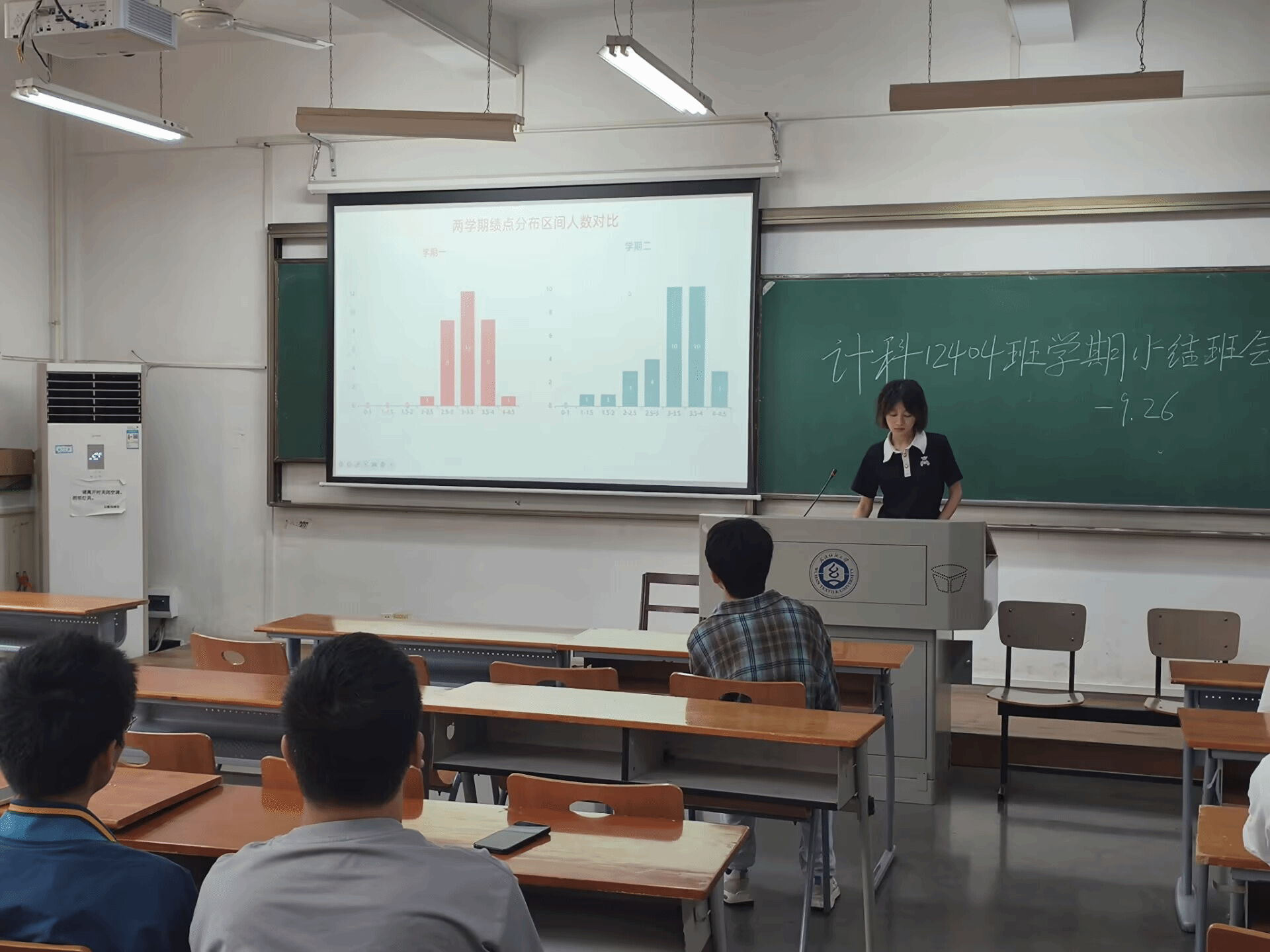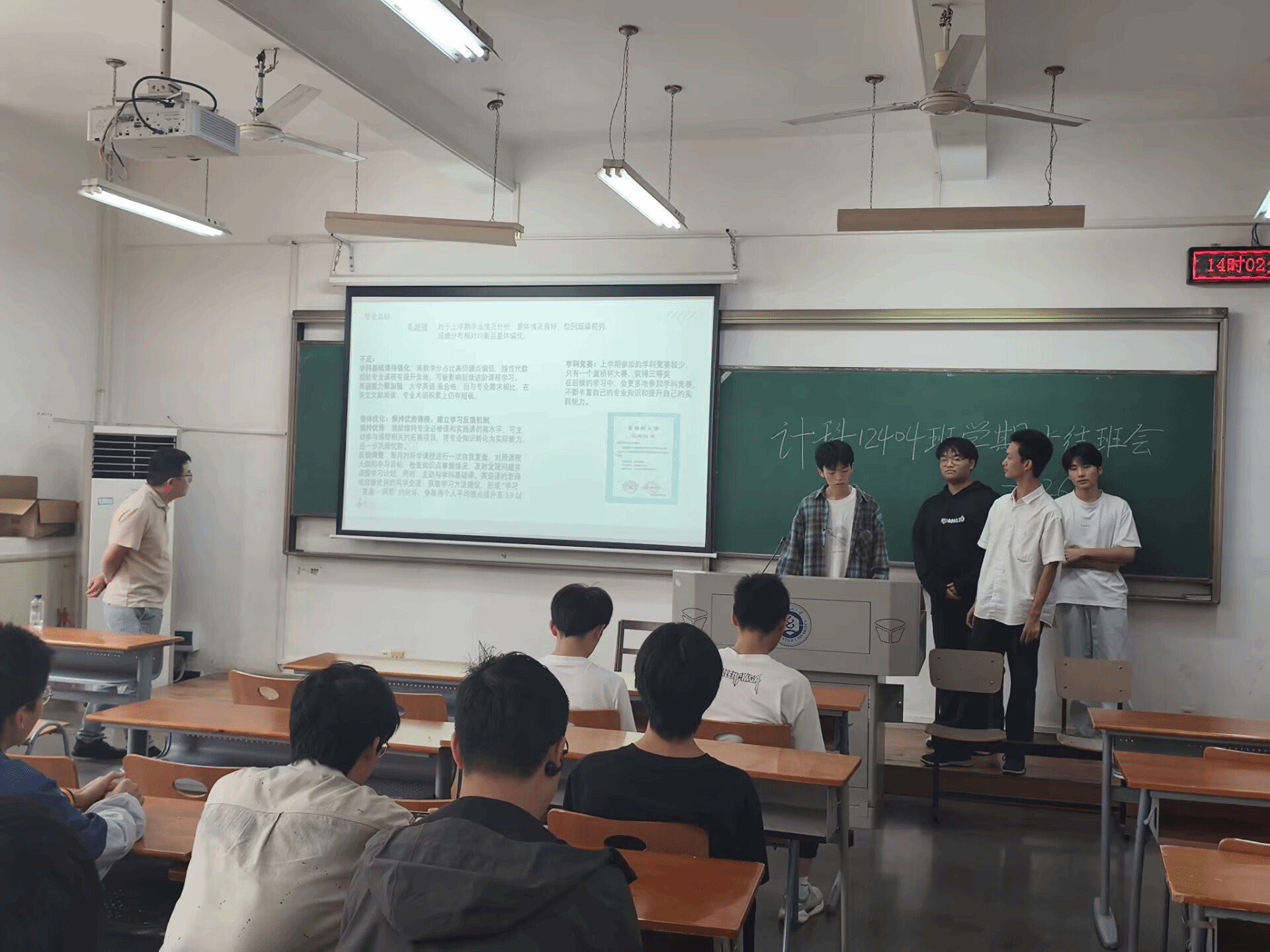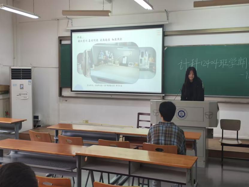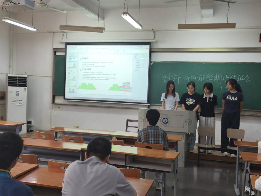 为全面总结班级建设成果,促进寝室间学习交流,9月26日下午,计算机类12404班在3号教学楼204教室举行2024-2025学年第一学期总结交流会。本次班会创新采用“寝室长汇报制”,由全班8个寝室的同学依次登台总结。班主任余锋老师和辅导员李港老师共同参与,班会由班长毛超强主持。
