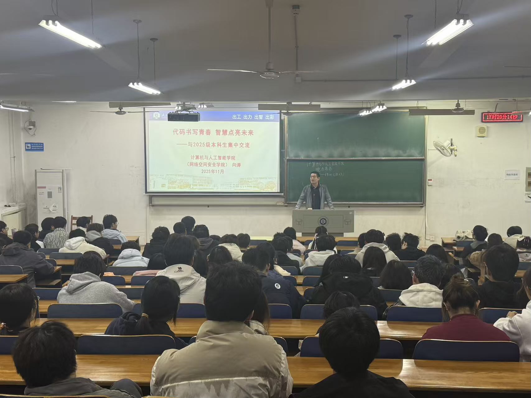 班会开始,各班完成周末晚点名工作,各年级辅导员简单总结了近期各班的学习风貌,并且邀请了学院院长胡新荣教授和院党委副书记向涛与同学们进行交流。