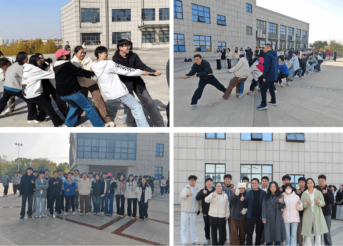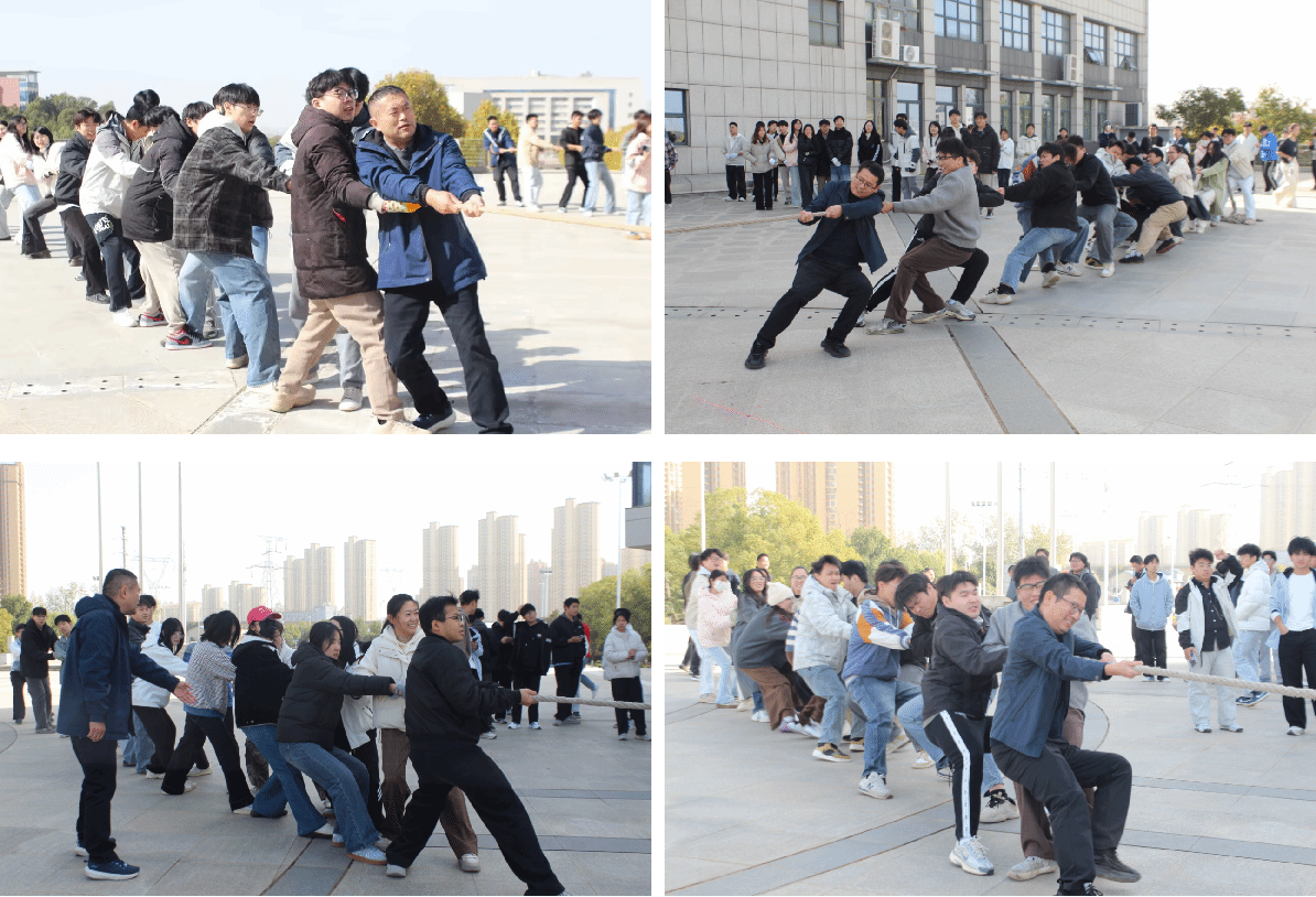 比赛开始前,参赛师生相互放松肩颈、交流发力技巧,老师与研究生并肩调整站位,现场洋溢着轻松而融洽的氛围。随着裁判哨声响起,参赛队员们迅速扎稳马步,紧握长绳,身体后倾形成坚实防线。