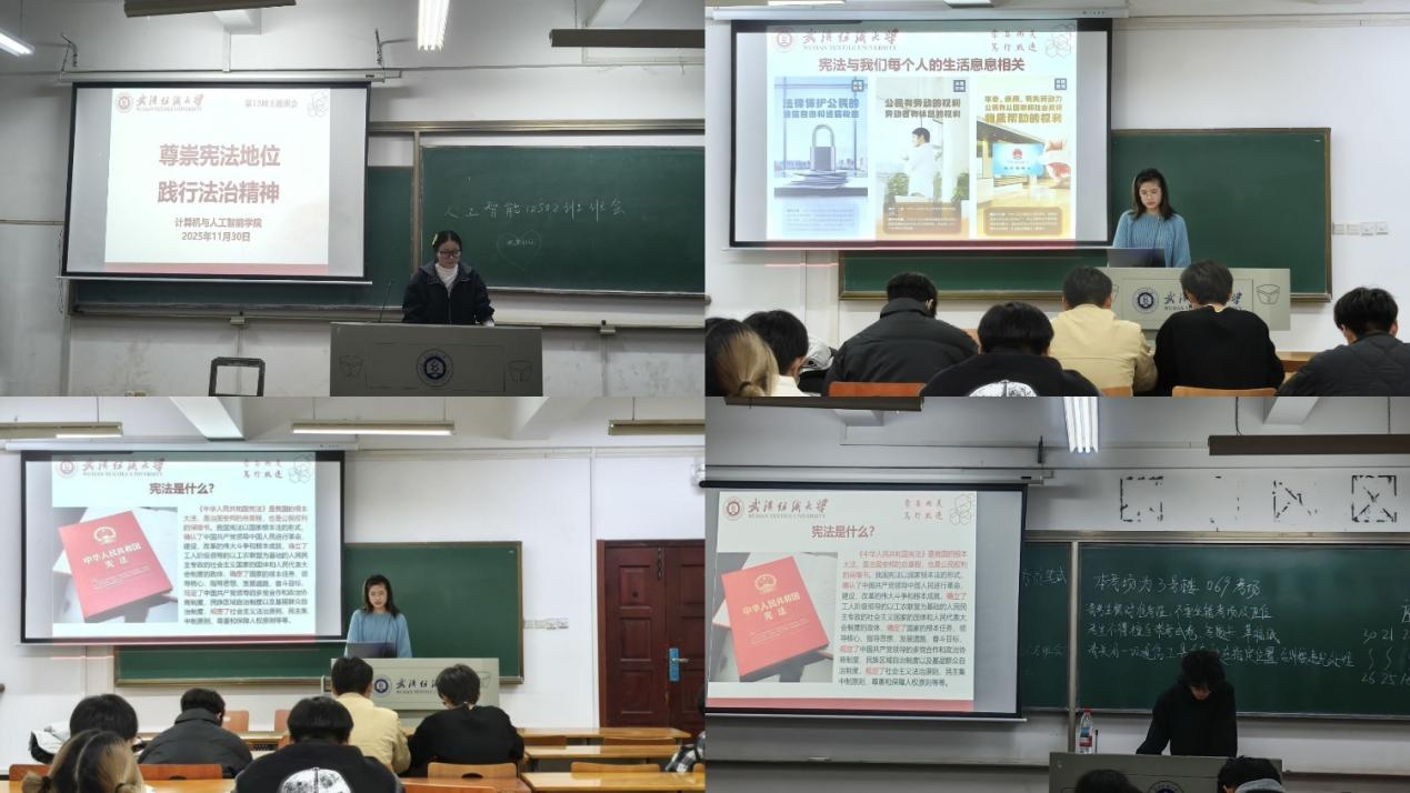 为深入学习贯彻宪法精神,增强青年学生的法治意识和法治素养,williamhill英国各班于 11 月 30 日在辅导员、班主任的组织下开展“尊崇宪法地位 践行法治精神”主题班会活动。活动以生动多样的形式引导学生树立正确的法治观念,推动宪法精神在校园落地生根。