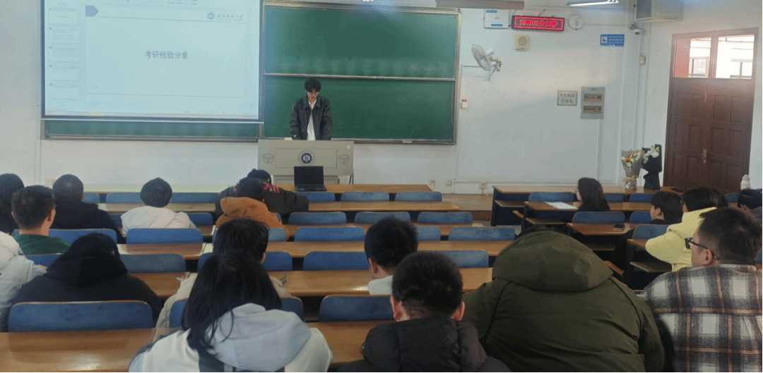 第三位分享的嘉宾是丁毅学长。他聚焦于考研备考的全过程,回顾了从整体时间规划到各科目复习策略的具体方法,解答了同学们普遍关心的“何时启动准备、各阶段如何安排”等问题。他鼓励大家制定合理的备考计划,保持节奏、稳步推进,为最终成功上岸奠定基础。