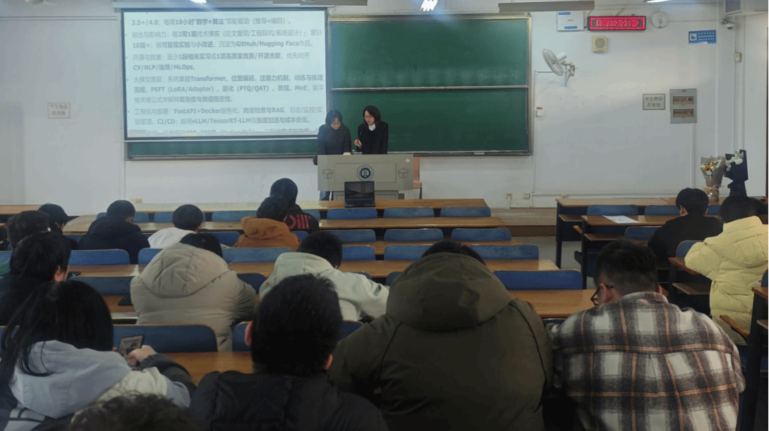 为深化专业建设,引导学生树立清晰的学习目标、科学规划个人发展,人工智能专业于12月18日下午15:00在YG03-517教室举办本科生论坛。本次活动由李丽老师主持,朱强老师、杨华利老师出席,并邀请三位优秀学长进行经验分享。