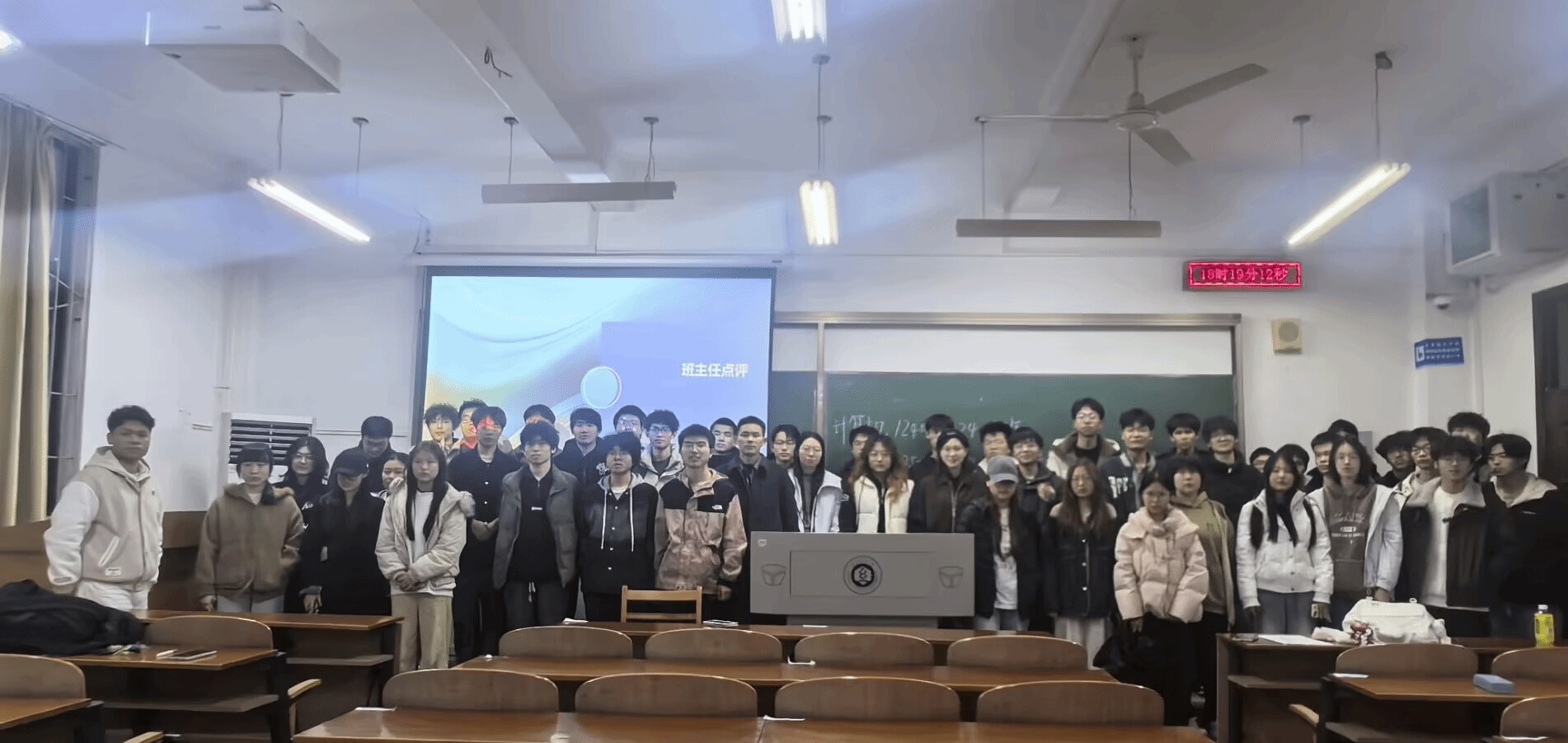 班会最后,班主任黄俊杰老师作总结讲话。他充分肯定了班级在英语四级通过率、学科竞赛获奖等方面的阶段性成绩,同时对班级基础成绩进行点评。他强调:“守住不挂科这条底线,是对自身负责、对未来负责的最基本要求。大学不是‘及格万岁’的终点站,而是夯实基础、提升能力、明确方向的起跑线。”黄老师进一步要求全体同学严格自律、合理安排时间、积极参与学科竞赛、及早规划毕业去向,把主要精力投入到专业学习和全面发展中。