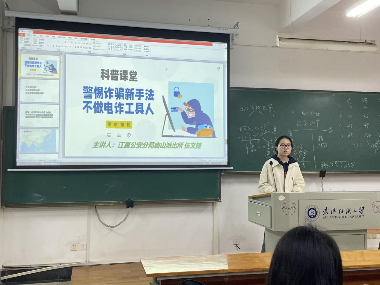 班会最后,各班围绕“警惕诈骗新手法,不做电诈工具人”开展安全教育。结合江夏公安分局庙山派出所民警的科普课堂内容,主讲同学通过剖析典型电信诈骗案例,向同学们普及新型诈骗手法,提醒大家警惕刷单诈骗、冒充客服退款等常见骗局,从源头上守护好个人“钱袋子”,进一步筑牢校园安全防护墙。
