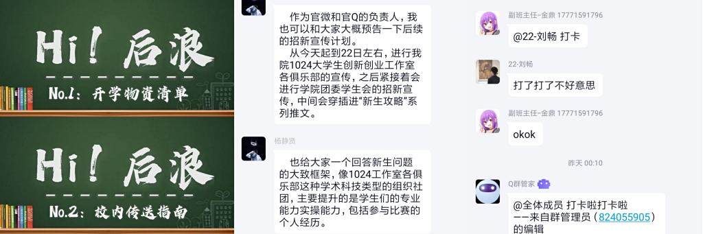 针对学术科技方面,学院今年将1024大学生创新创业工作室招新宣传时间前移,并联合学院官微和官方QQ同步进行旗下各学术性俱乐部的招新宣传工作。为新生提供更多了解学院、了解相关学术科技并根据自己兴趣积极参与其中的机会,充分调动新生的学习积极性。