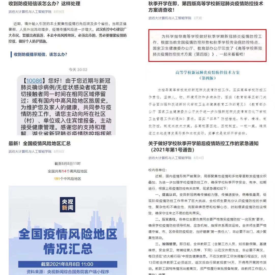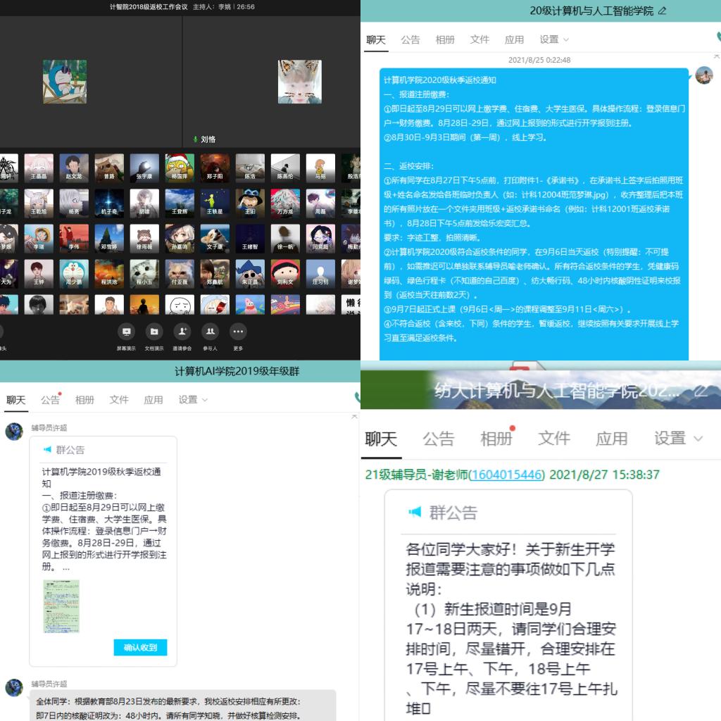 学院第一时间在官网、微信平台发布疫情防控要求,倡导师生居家做好疫情防控工作。建立“学校、学院、年级辅导员”三级值守处置体系,实行24小时值班制度,确保留校生们学习实践有条件、物质生活有保障。学院还利用线上视频会议平台多次召开学工疫情防控工作会议,由党委副书记涂耀威传达校疫情防控要求,各辅导员落实好疫情防控责任,认真做好疫情防控工作,确保秋季学生能有序返校开学。