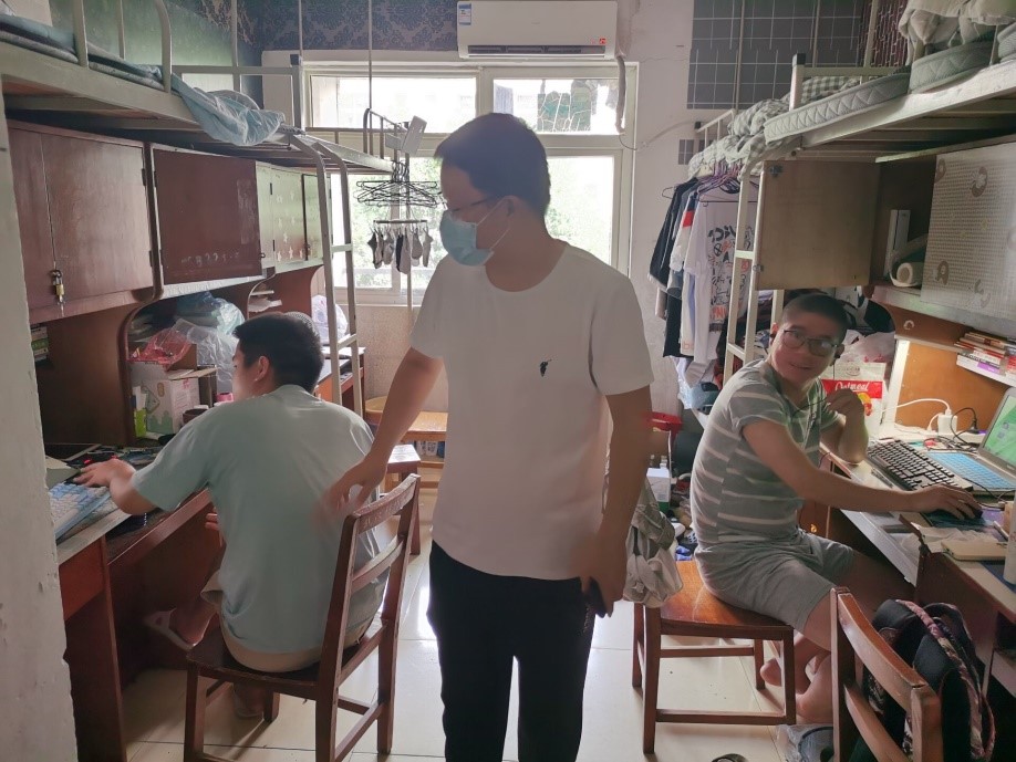 江夏区恢复通行后,8月23日,院党委副书记涂耀威带领辅导员许超、廖龙等,第一时间深入学生宿舍、实验室了解留校生情况,并耐心向留校生传达学校疫情防控及开学的相关规定,再三提醒学生注意宿舍安全、饮食安全,做好个人防护。其他辅导员按值班表有序到学院值班,处理学生突发事件、关心服务留校学生。