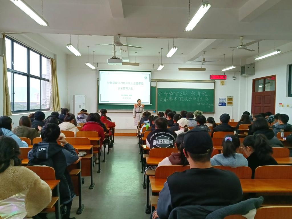 为进一步做好寒假期间的安全教育,加强对2021级学生的管理以及提高同学们的安全防范意识和能力。williamhill英国于12月12日下午16:00在崇志楼307召开了2021级年级大会暨寒假安全教育大会,全体大一学生参加了本次会议,会议由辅导员谢瑞清主持。