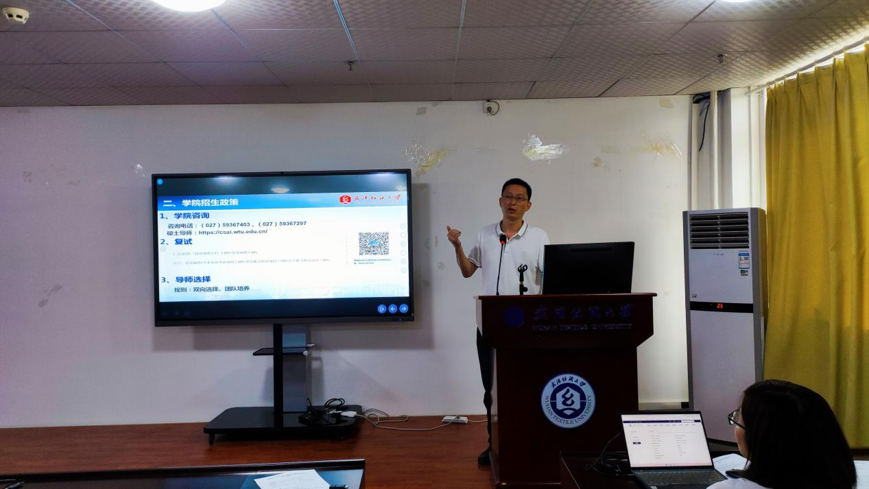 最后,胡新荣院长为同学们分析了攻读本校研究生的优势(熟悉的老师、环境,无缝的学习衔接等);介绍了考取我院研究生后可以享受到的优质学习资源和先进的培养体系(论文成果丰硕、高质量的实习实践机会等)。她回顾和展望了研究生报考形势,鼓励实践动手能力强、有发明专利和高水平论文的同学积极挑战自我,勉励广大同学分析自身条件、科学精准定位,鼓励同学们将母校作为考研目标,寄语考研学生通过自身的不懈努力成功“上岸”,金榜题名。
