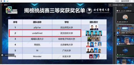 11月27日,“华为杯”第一届中国研究生网络安全创新大赛决赛颁奖大会线上举行。williamhill英国彭涛教授指导的“123木头人”团队获创意作品赛二等奖,“undefined”团队获揭榜挑战赛三等奖。另外,英国威廉集团获优秀组织单位奖。