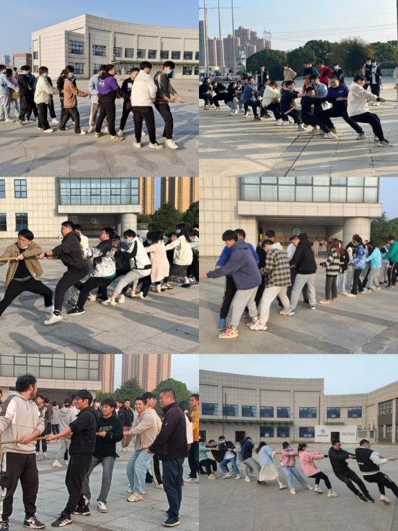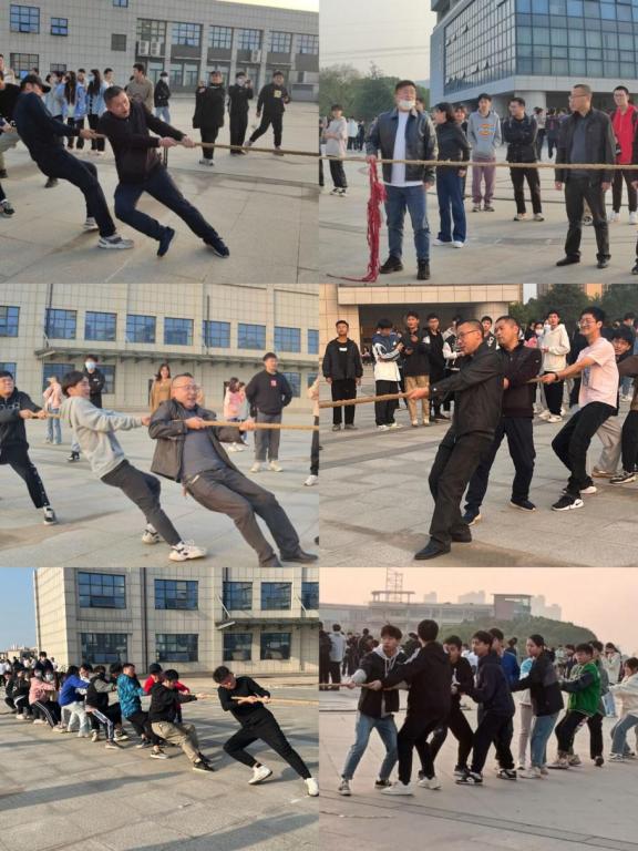 拔河比赛作为一项极其考验成员间合作能力的角力团队赛事,一直深受大众喜爱。为增强同学们之间的凝聚力和团结协作能力,丰富学院学生的课余生活,我院分别于11月17日和11月24日在实训楼广场举行了以“力拔青春,强我体魄”为宗旨的拔河比赛。通过初赛大一、大二、大三年级各有四支队伍进入了四强赛,每支队伍都由10名男生、5名女生组成,这12支经过层层选拔的精锐队伍在本次赛场上展开了激烈的角逐。此外,学院院长胡新荣、党委书记晏伟、副院长魏雄、彭涛,副书记向涛、全体辅导员参与了此次拔河比赛。