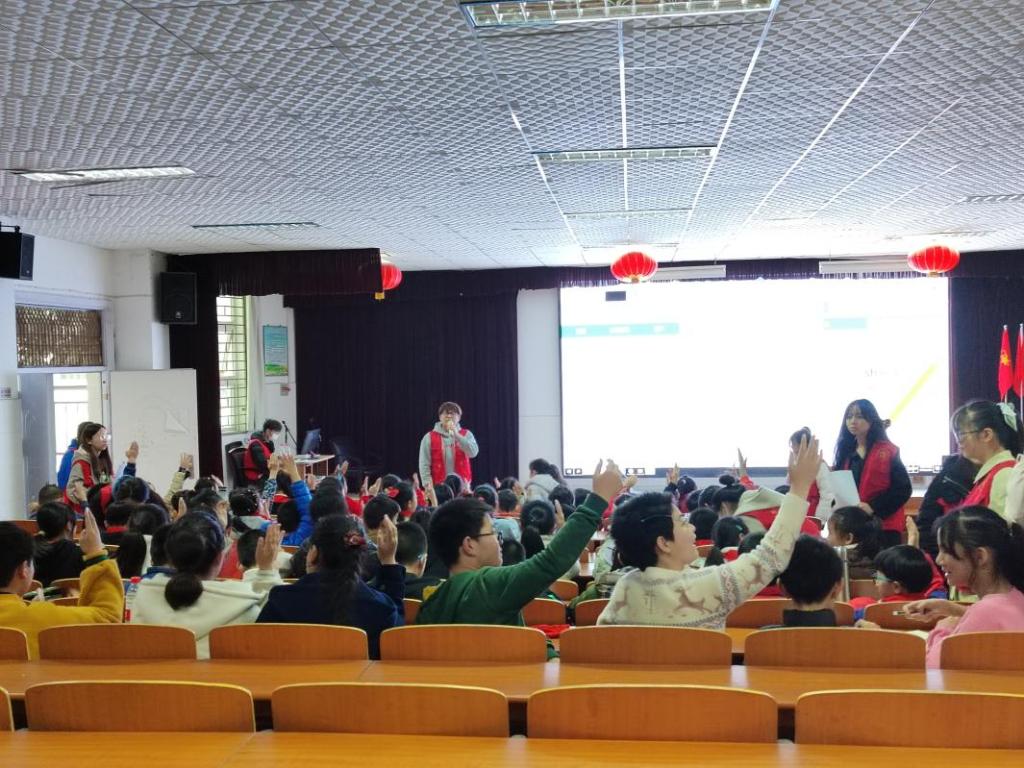 同时为了进一步提高志愿服务质量,完善志愿者后续的教学安排,使志愿服务更加贴近石洞街学校学生的学情和兴趣,志愿者在现场做了关于同学们对计算机熟悉了解程度的调研。最后,志愿者为参与课堂互动的同学们赠送了小礼品,活动在欢声笑语中圆满结束。