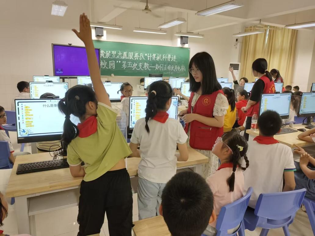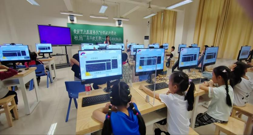 “小嘴巴,不说话;小眼睛,看老师”,志愿者用适合小朋友特征的口号来规整课堂纪律。褪去稚嫩与羞涩,服务队成员已经成功转换角色,能胜任志愿者小老师的角色了。志愿者小老师饱满的精神风貌、灵活的应变能力、孩子们认真的求知眼神、出色的课堂作业完成情况,都彰显着“计算机科普进校园”活动的优秀成果。既用科技知识浇灌了祖国娇嫩的花朵,又对新一批祖国的栋梁进行了考验与磨炼。