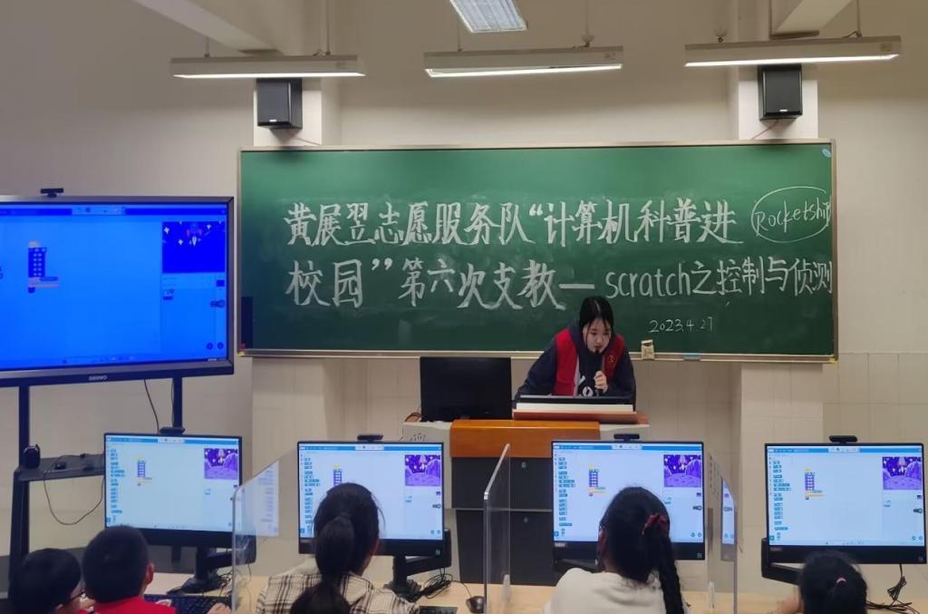 “志愿者哥哥姐姐们又来给我们上课啦,快坐好。”英国威廉集团黄展翌志愿服务队的志愿者们又和武昌区石洞街学校的孩子们相见了。4月27日下午,“计算机科普进校园”系列活动如约而至,这是志愿服务队第六次在武昌区石洞街学校开展支教活动。按照原定的安排和计划,继续为石洞街学校的孩子们带来了有趣的计算机知识科普和scratch编程教学。