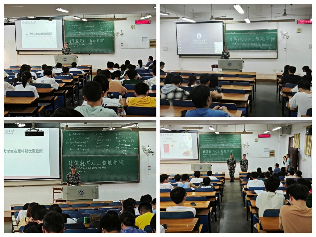 应征入伍宣讲会上,军训教官身穿统一的服装,以亲身经验向同学们做征兵宣讲。从部队基本简介、应征入伍基本条件、大学生参军特别优惠政策、大学毕业生参军优势几个方面详细讲解了大学生应征入伍的相关信息。并从着装、饮食、住宿、医疗、文体几个方面展示了丰富多彩的军营生活。同时也提醒各位同学要学会识别征兵防诈骗小技巧,通过正规渠道应征入伍。号召同学们积极响应国家的呼唤,为祖国的强盛付出自己的青春与汗水。