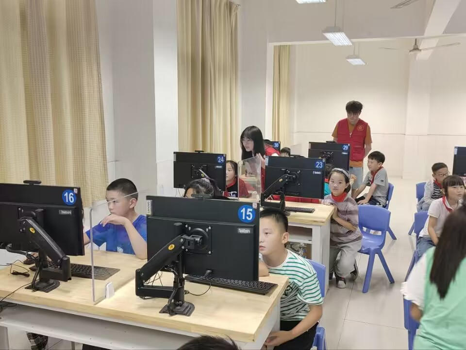 志愿者在小朋友们心中种下的“计算机科普”小苗相继开花结果,我们也快到了要和孩子们说再见的时候了。高年级同学迎来了考试前最后一节复习课,志愿者们课前进行了反复的斟酌考虑择出最具代表性和趣味性的题目,并进行知识点的分类与阐释。先做题再讲题从而确保孩子们能够完全吃透每一个编程细节。屏幕上海底世界里,小朋友们举一反三,让更多的动物在水里来回遨游;绿色的森林里,小鸟变换姿态地飞行,被狙击后迅速不见……优异的做题结果让志愿者们内心无比自豪,也对下一次课孩子们即将交出的考卷充满期待。