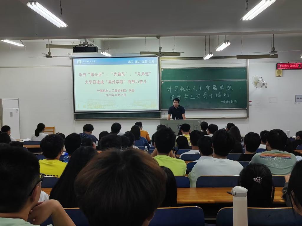 为欢迎新加入的学生会成员,加强团委学生会队伍建设,部署新学期团学工作,williamhill英国团委学生会于10月15日晚在阳光校区03-118教室举行了第一次骨干培训会议,学院党委副书记向涛,各年级辅导员以及学生会全体成员出席了本次会议,会议由2022级辅导员廖龙主持。