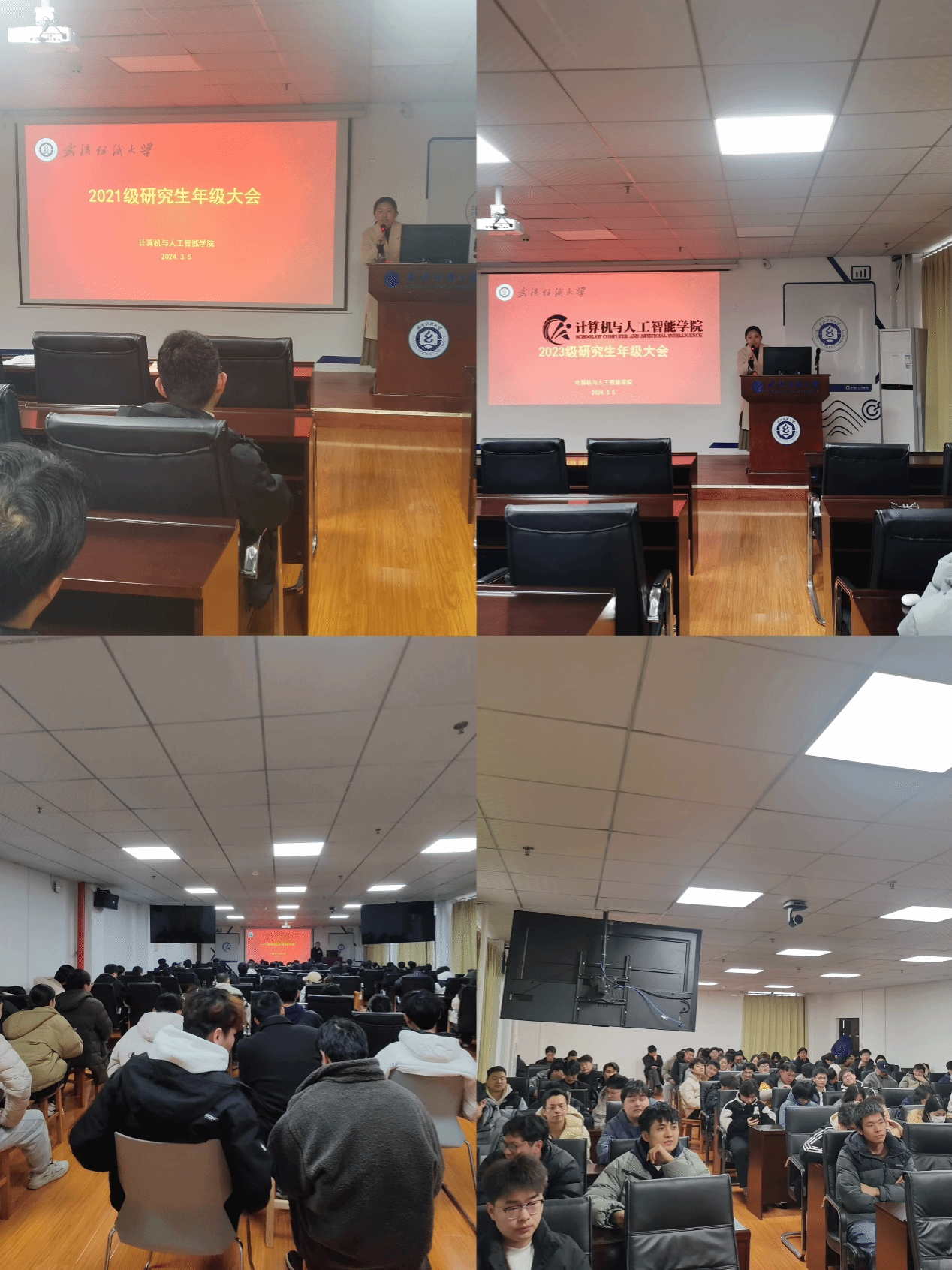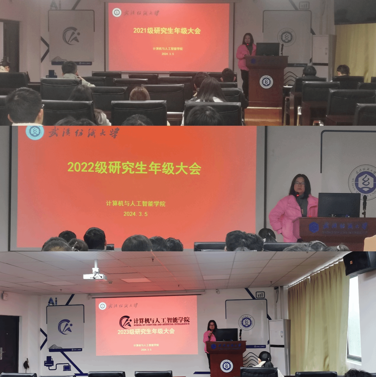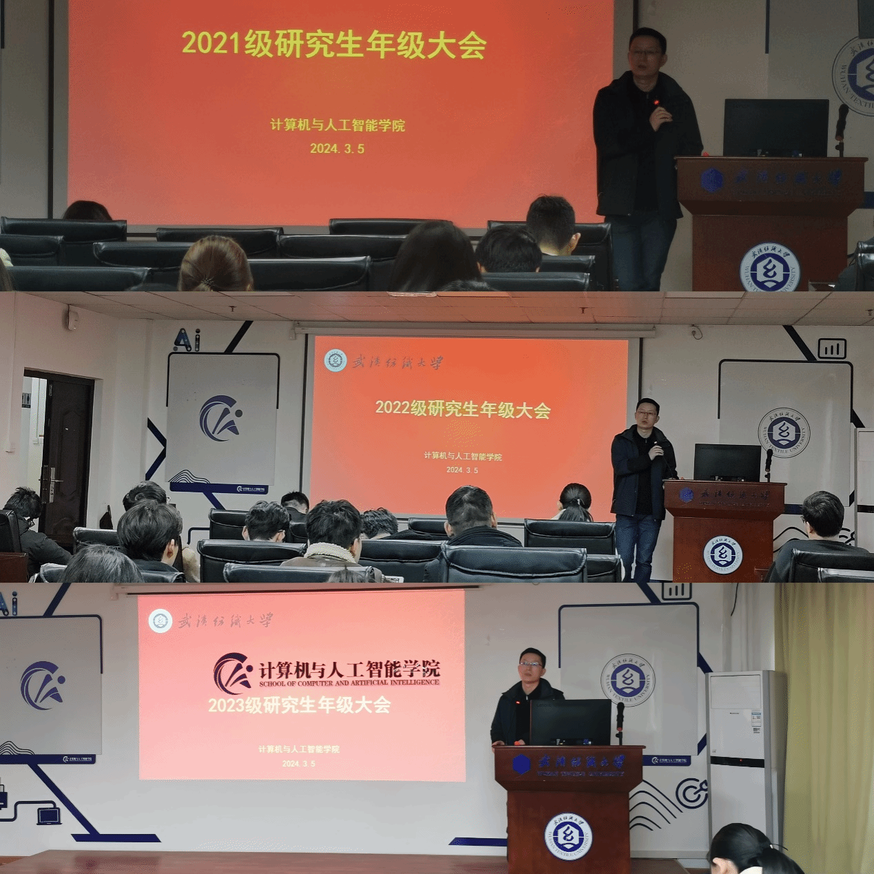 新学期伊始,为帮助研究生调整学习状态,明确本学期学习任务和目标,3月5日下午4:30-6:30在崇真楼南楼A4030依次召开研究生三个年级的年级大会。年级大会由学院副院长彭涛主持,教学秘书罗园、研究生辅导员余梦帆和全体研究生参与。