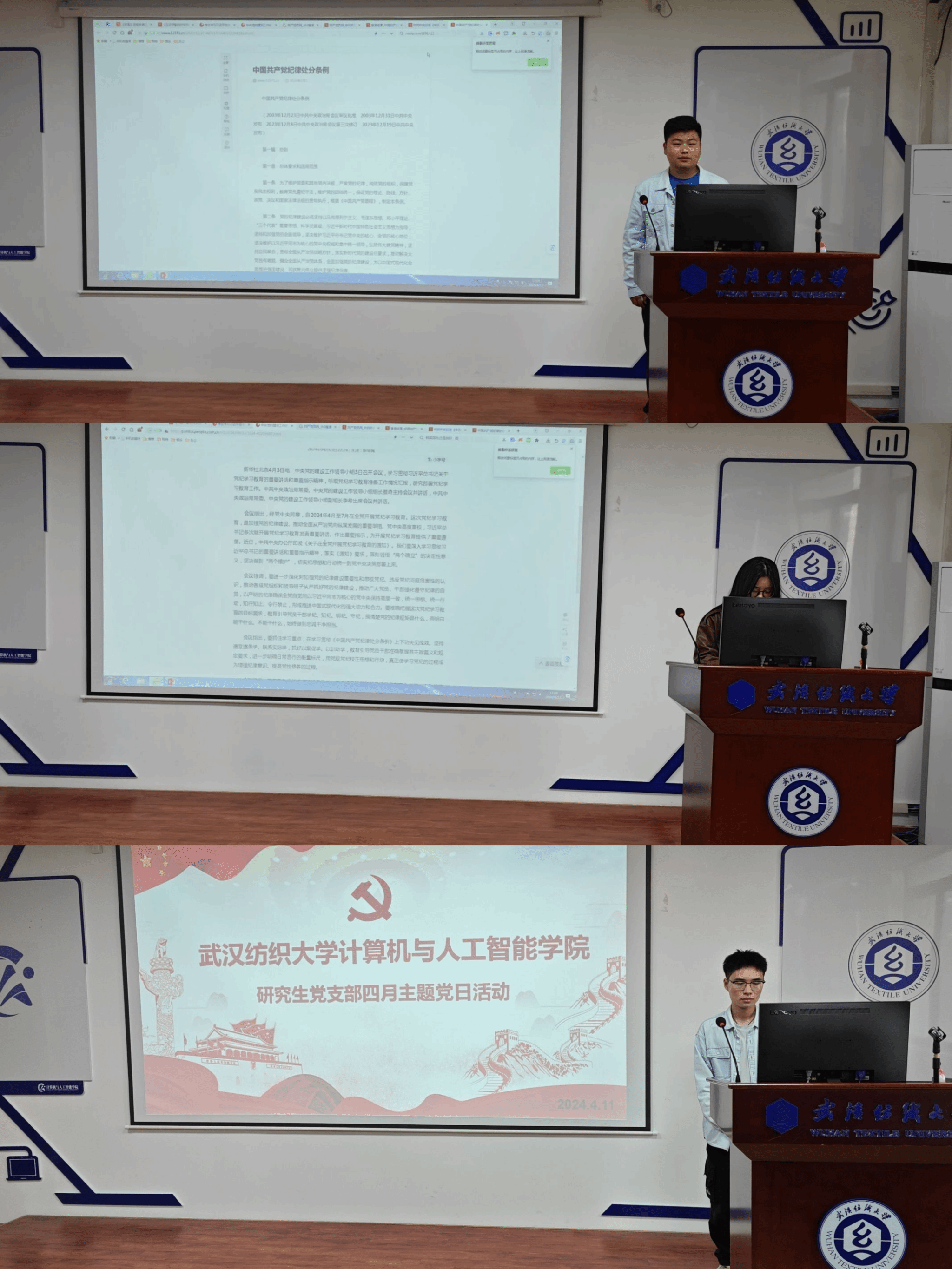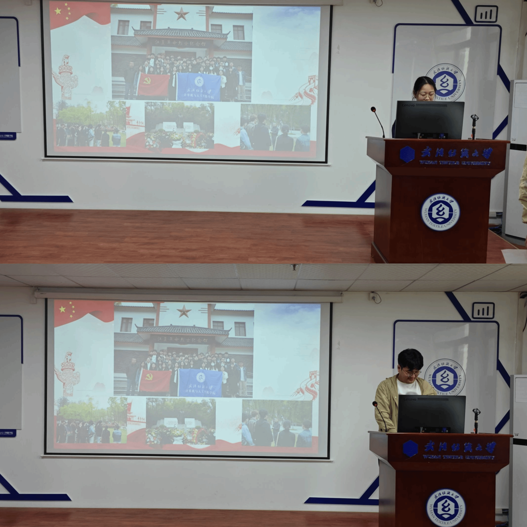 在清明节期间,党员同学在学院老师的引导下在江夏革命烈士纪念馆开展了扫墓活动,张龙杰和贺昕宇同志作为代表对此次扫墓活动进行了分享。