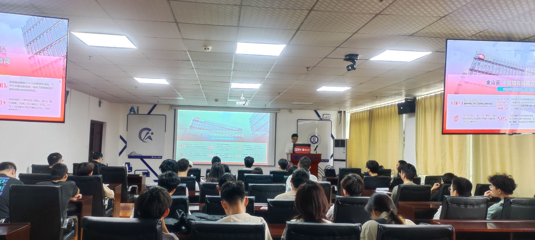 在宣讲环节,金山云公司实习生招聘负责人详细介绍了公司的业务领域、企业文化和发展前景,让同学们对金山云有了更深入的了解。同时,负责人还分享了实习生在金山云的成长路径和职业发展机会,激发了同学们的求职热情。随后,紧张而有序地开展了笔试环节。同学们凭借扎实的专业知识和良好的综合素质,认真作答。笔试成绩优秀的同学进入了面试环节,面试包括专业面试和综合面试,为学生提供了一个展示个人才华和职业规划的平台。同学们与金山云的面试官进行了深入的交流,面试官针对同学们的专业技能、实践经验和职业规划等方面进行了提问,同学们也积极表达了自己的见解和期望。经过激烈的角逐,部分同学脱颖而出,成功获得了金山云实习生的offer。