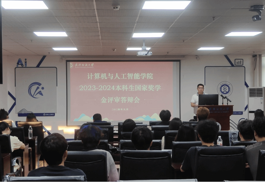 经过个人申请、资格审查、年级推荐,共有9名学生进入现场答辩环节。秉持着公平、公正、公开的原则,此次答辩会议全程录像,学院评审会全体成员均进行打分。在答辩正式开始之前,易凡详细地向大家阐述了答辩的具体流程以及相关注意事项。根据事先的抽签顺序,每位答辩的同学拥有五分钟的上台发言时间,他们分别从思想状况、学业成绩、科技竞赛经历、学生工作以及实践服务等多个维度,全面地展示了自己在2023—2024学年中所取得的进步与成长,展现了计智学子的风采与担当。