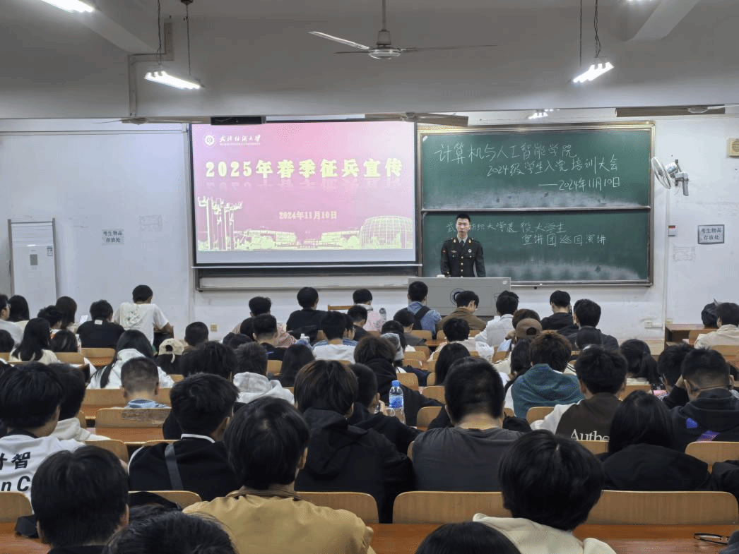 学院党委副书记、各年级辅导员、班主任利用周末晚班会开展了“热血铸军魂、报国正当时”征兵政策宣讲活动,活动主要围绕应征条件、入伍流程、大学生参军特别优惠政策、军营生活、征兵防诈骗六个方面进行宣传介绍。