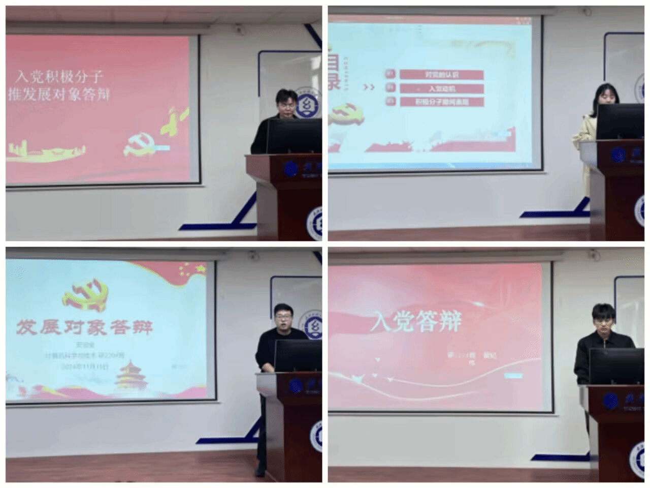会议的第二项是2024年下半年入党积极分子推优答辩。何鉴、方强、李珠婷等18位同志参加了入党积极分子转发展对象的答辩讨论。答辩的同学展示了他们在思想、学习和生活上的成绩,并承诺将继续提升自我,积极向党组织靠拢。群众代表对他们在学习和生活各方面的表现进行了客观评价。最后,由各支部委员组成的评委团,从党史理论、学业成就、志愿服务等多个角度对答辩者进行了全面的综合评估。