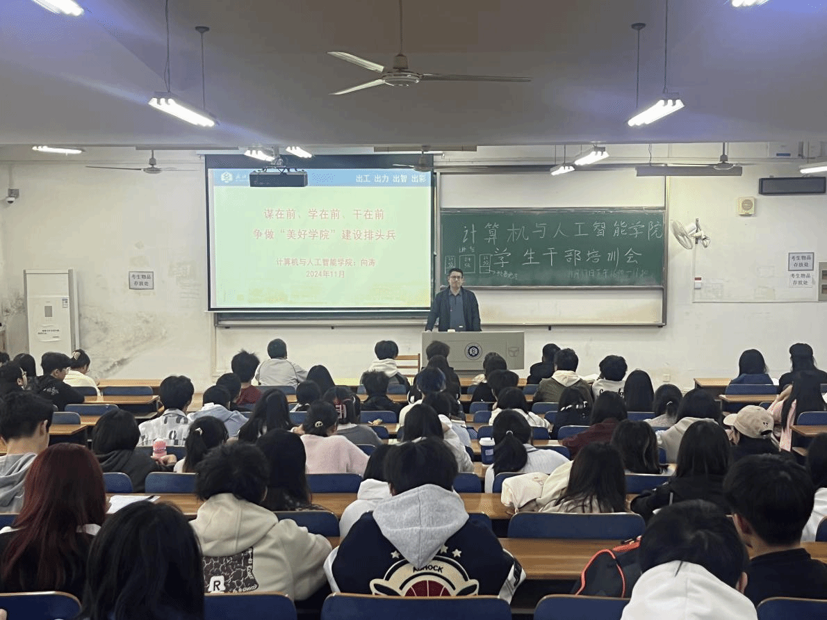 为提升学院学生干部的综合素质,增强学生干部的引领力、组织力、服务力,明确工作职责。学院于11月17日下午在03-117组织了全院学生干部赋能培训大会暨书记讲专题党课活动。学院党委书记晏伟、副书记向涛、辅导员、各年级班级学生干部、学生会主席团及部长、全体预备党员齐聚一堂,共同参与了这场关于学习、管理、生活的思想交流。